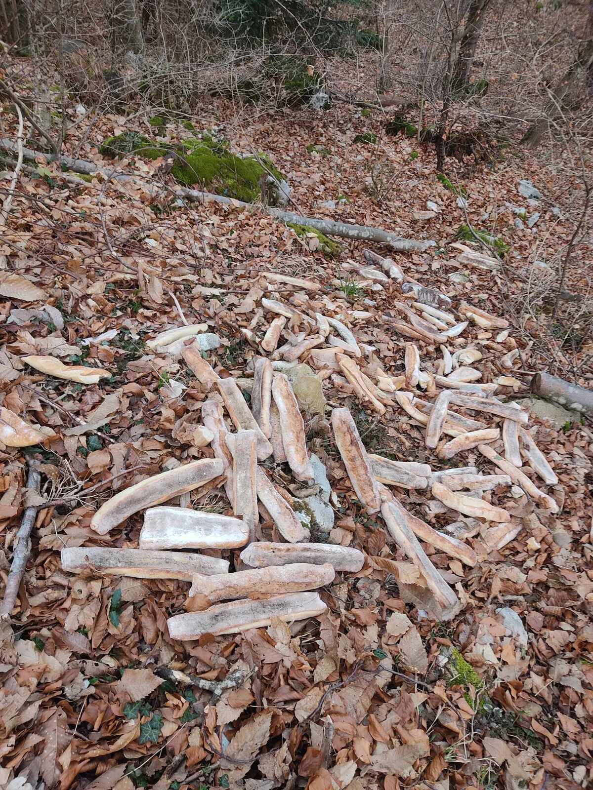 Dépôt de pain, environ 60 gros pains, sur approximativement 10 m².