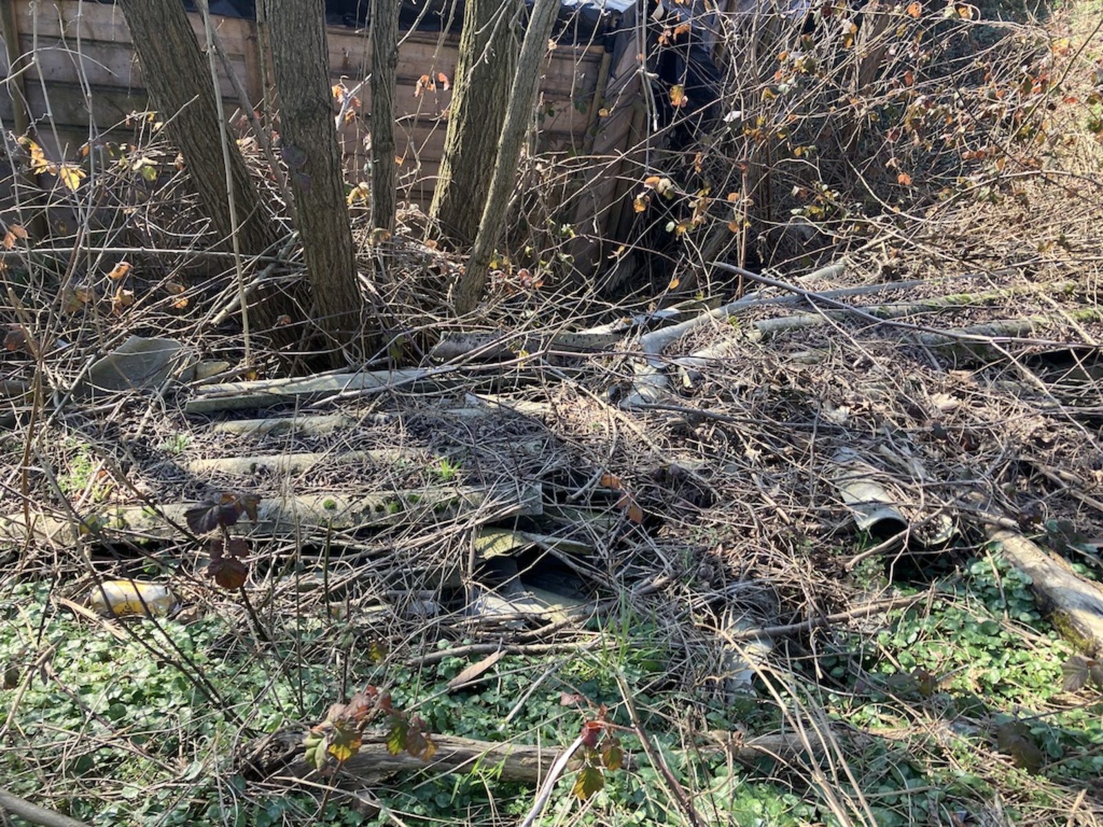 Le dépôt est le long de la clôture d'un jardin privé (qui a fait l'objet de beaucoup d'aménagements), côté route, sur l'espace public.