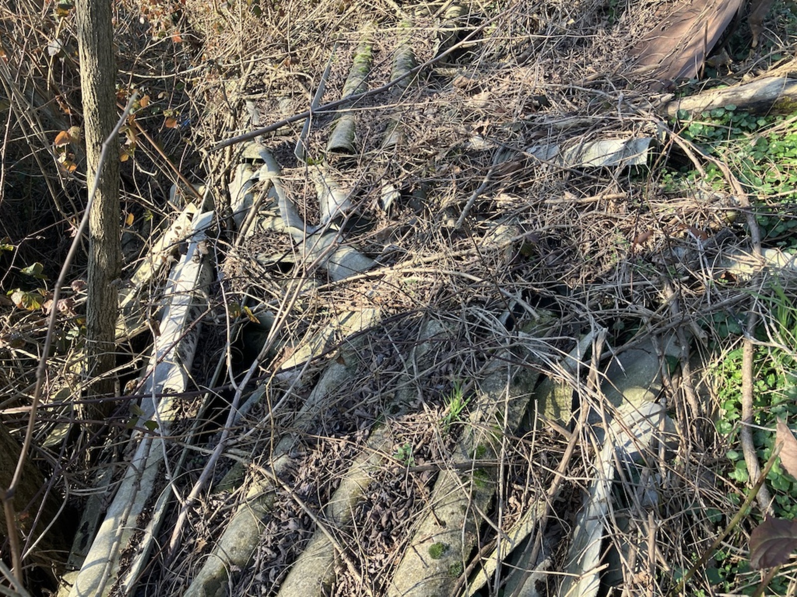 Dépôt d'anciennes plaques de Fibrociment, sur environ 5m x 3m.