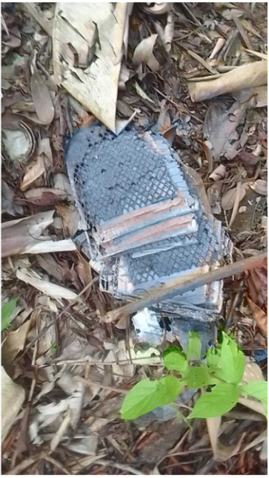 Type de déchets : bâches plastiques, cartouches, batteries calcinées...
