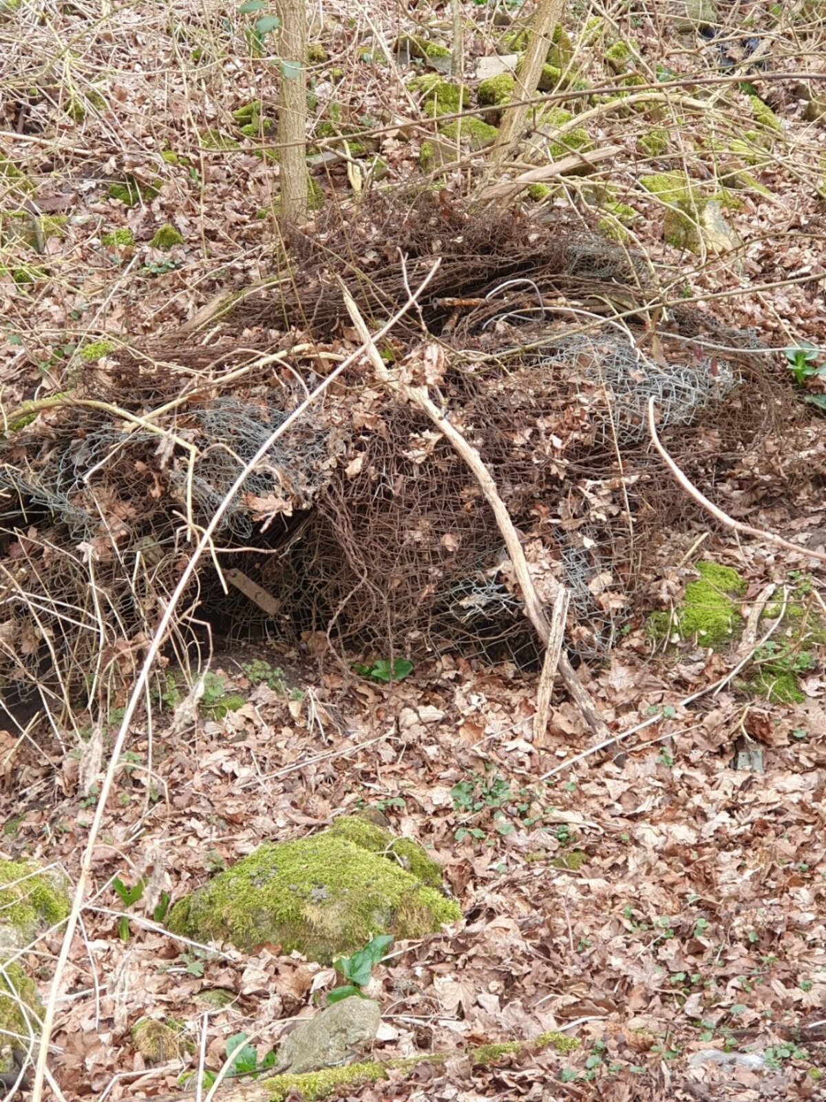 Dépôt de déchets de fils de fer, pneus et ballon d'eau chaude au bord de la forêt de la Côte de Saint-Martin.