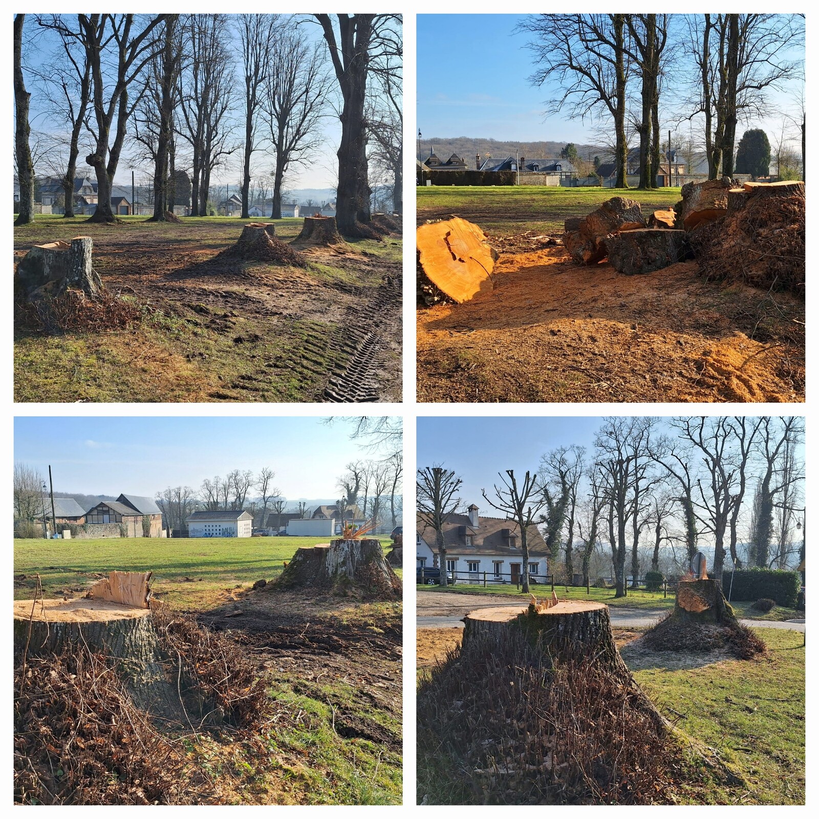 9 arbres centenaires (tilleuls) ont été abattus dans la semaine du 10 février à Mainneville (27150) sur la place du Plays. Outre le dommage écologique, il faut noter que cette place est répertoriée comme un site inscrit (arrêté d’inscription du 23 avril 1932 Numéro 27 000 008), étant donné ses alignements remarquables d’arbres centenaires classés Espace Boisé Classé.