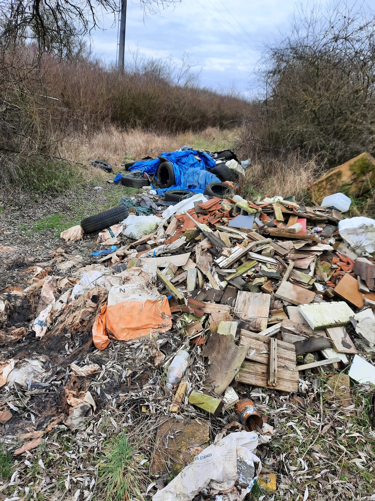 A moins de 20 m du ruisseau de Norroy, cours d'eau protégé au titre des Bonnes Conditions Agricoles et Environnementales (BCAE 2025) : des dépôts sauvages ont été constatés (pneus, matelas, bouteilles et sacs plastiques, gravats… ) le long de la "Rue" du Barrage d'Argancy.
