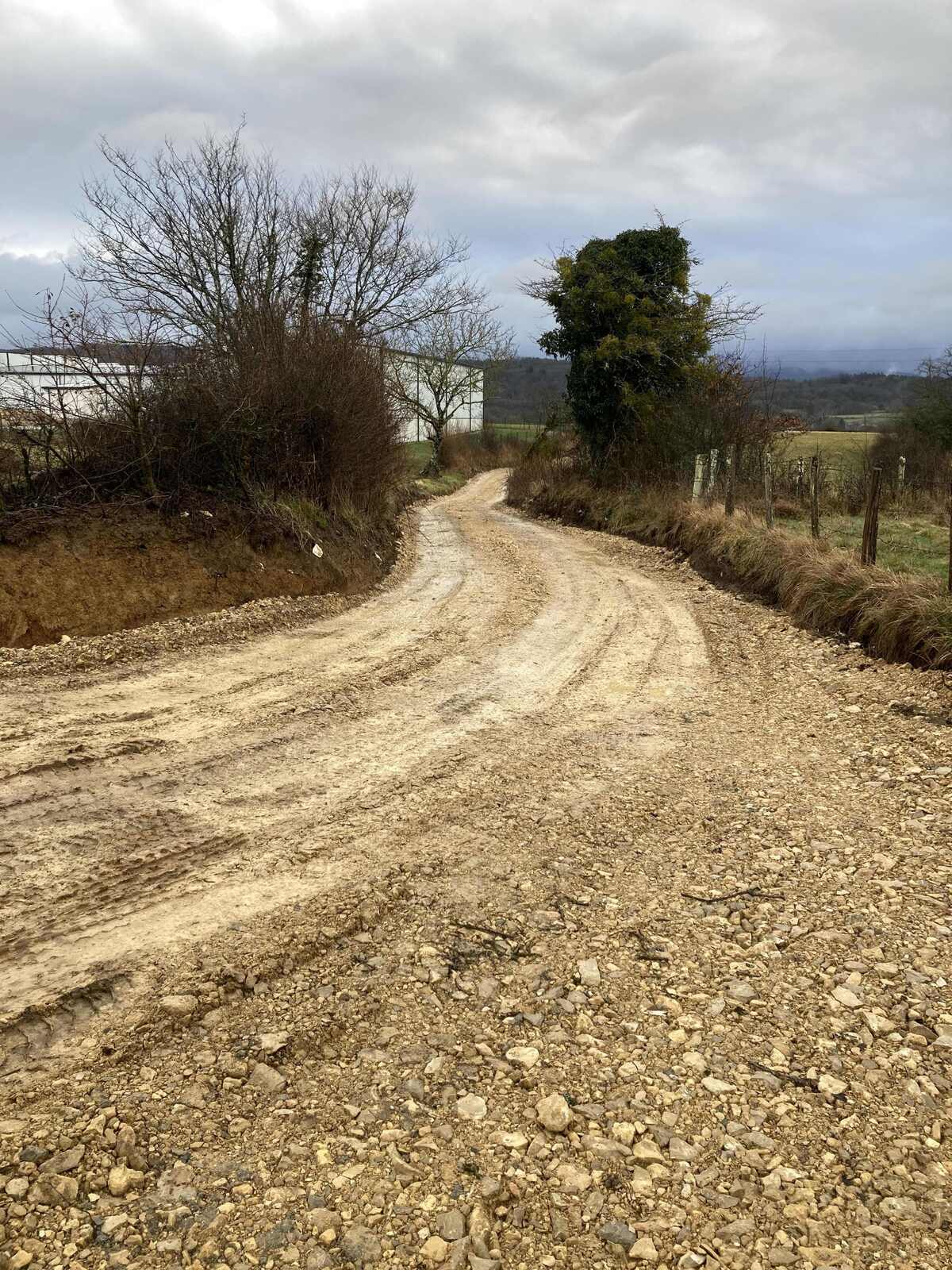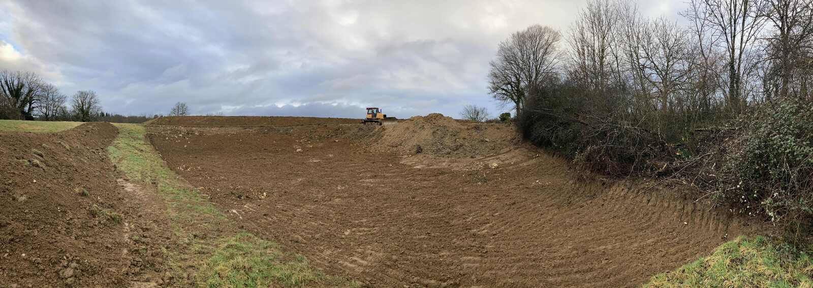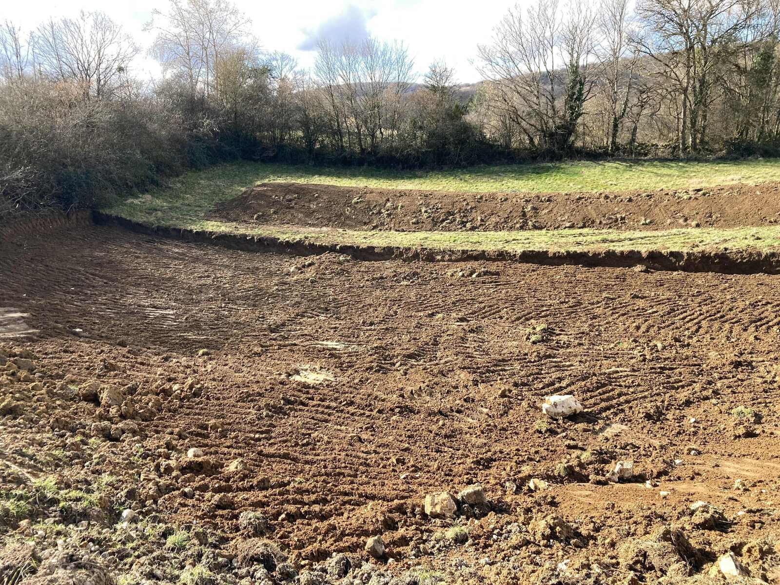 Enfouissement de déchets divers (déchets inertes, gravats, grave ciment, quelques déchets verts/DIB/canalisations potentiellement amiantées) dans un vide de fouille créé artificiellement (la terre végétale du pré a été décapée et déposée en merlon) dans un champ agricole. Les travaux de création du vide de fouille comme les opérations de remblaiement sont réalisés dans une doline calcaire. Un chemin a été élargi et les haies arrachées pour permettre l'accès à la zone par les camions.