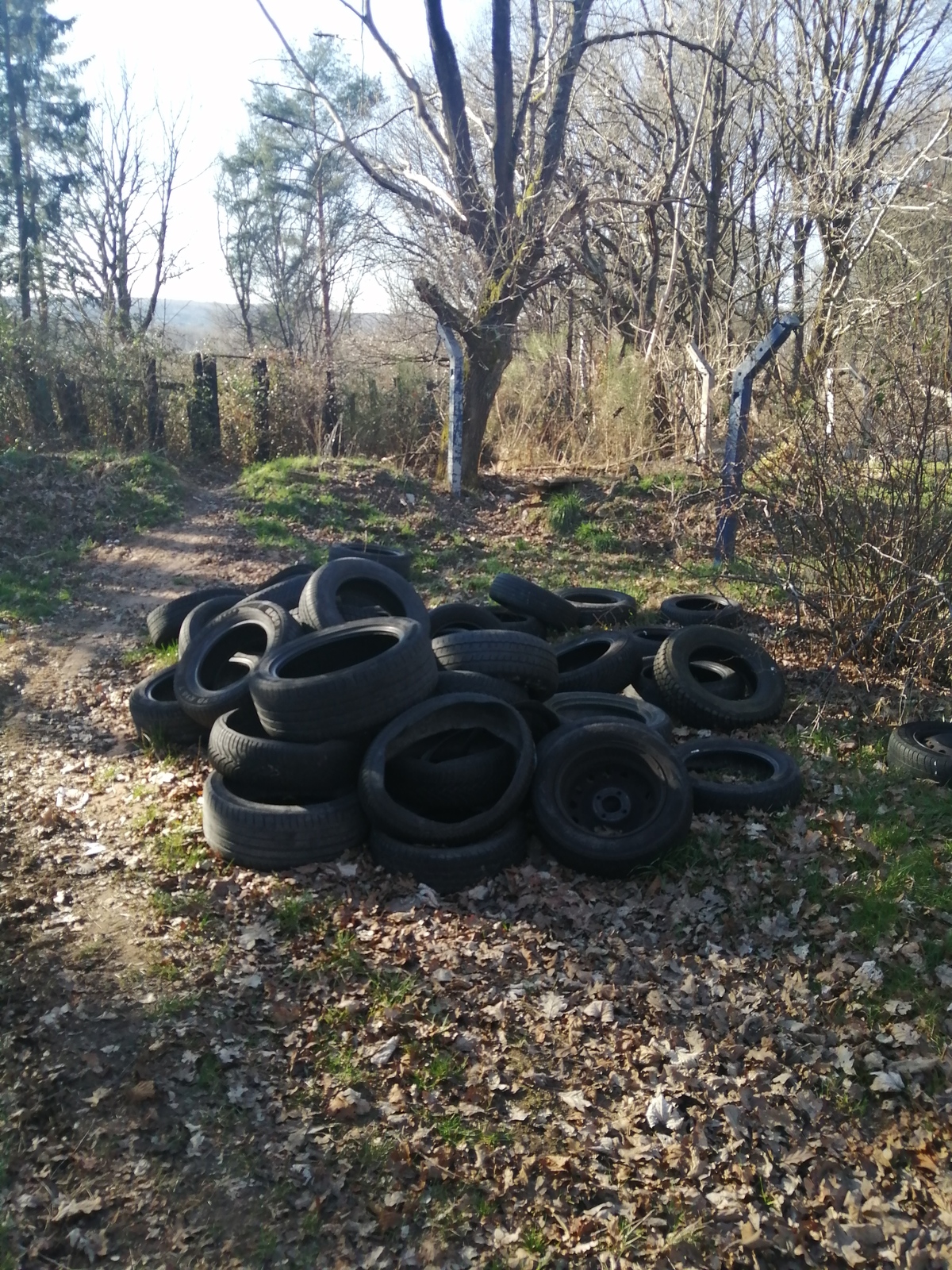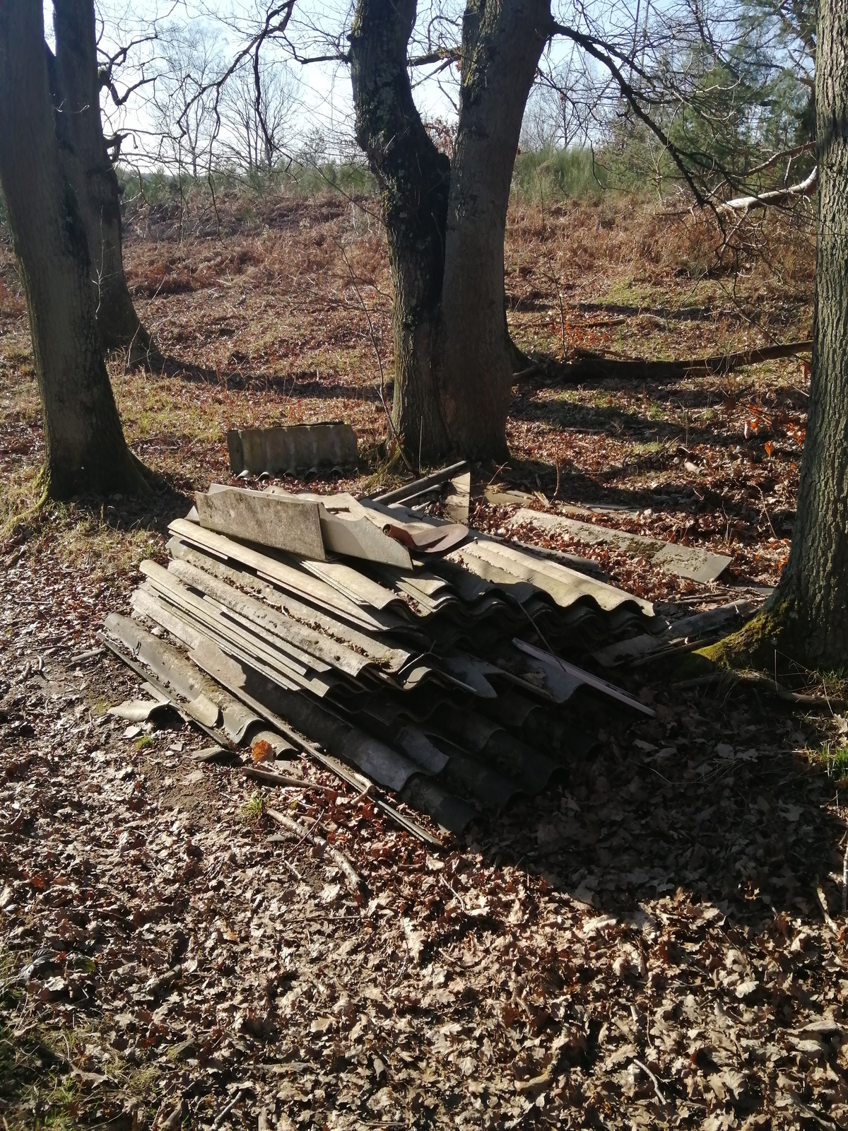 Dépôt sauvage de plaques en fibrociment amianté et dépôt sauvage de pneus de voiture.