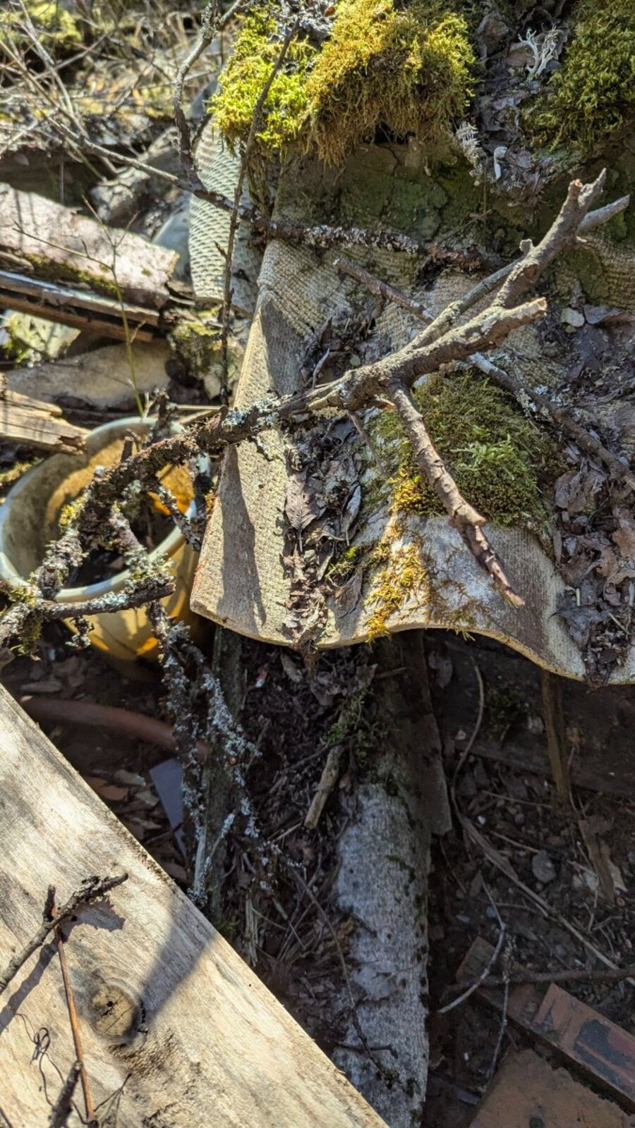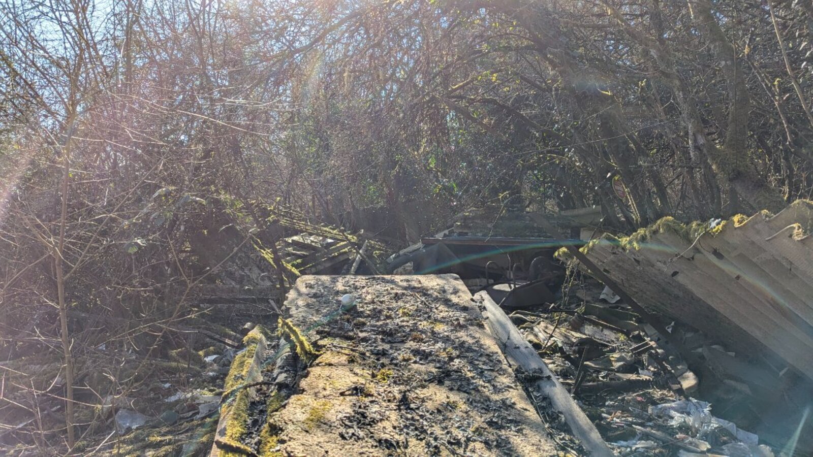 Dépôt sauvage de nombreux déchets, dont possiblement des plaques en fibrociment amianté.