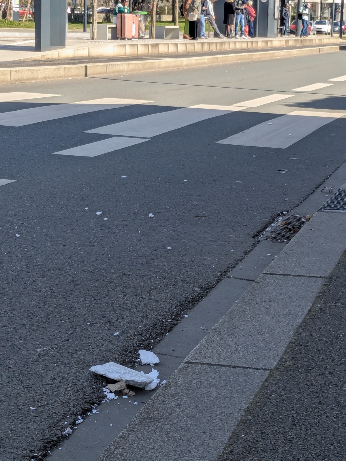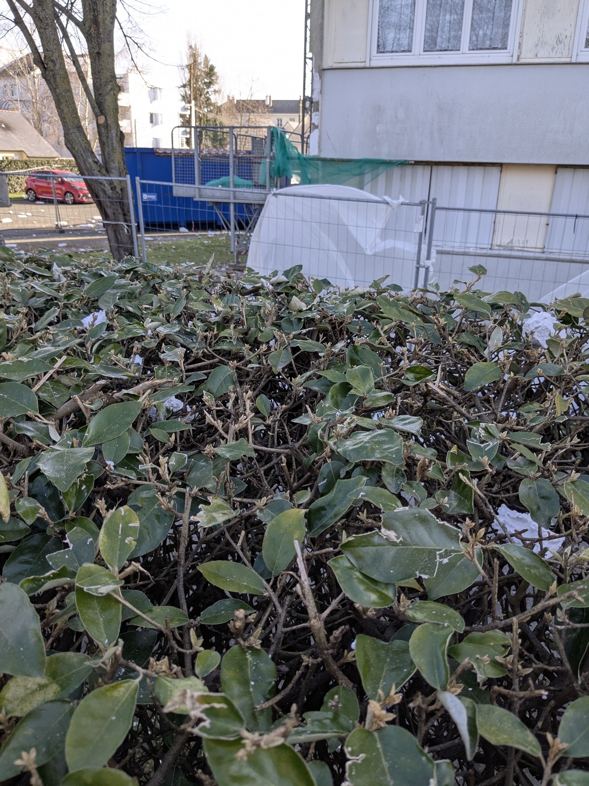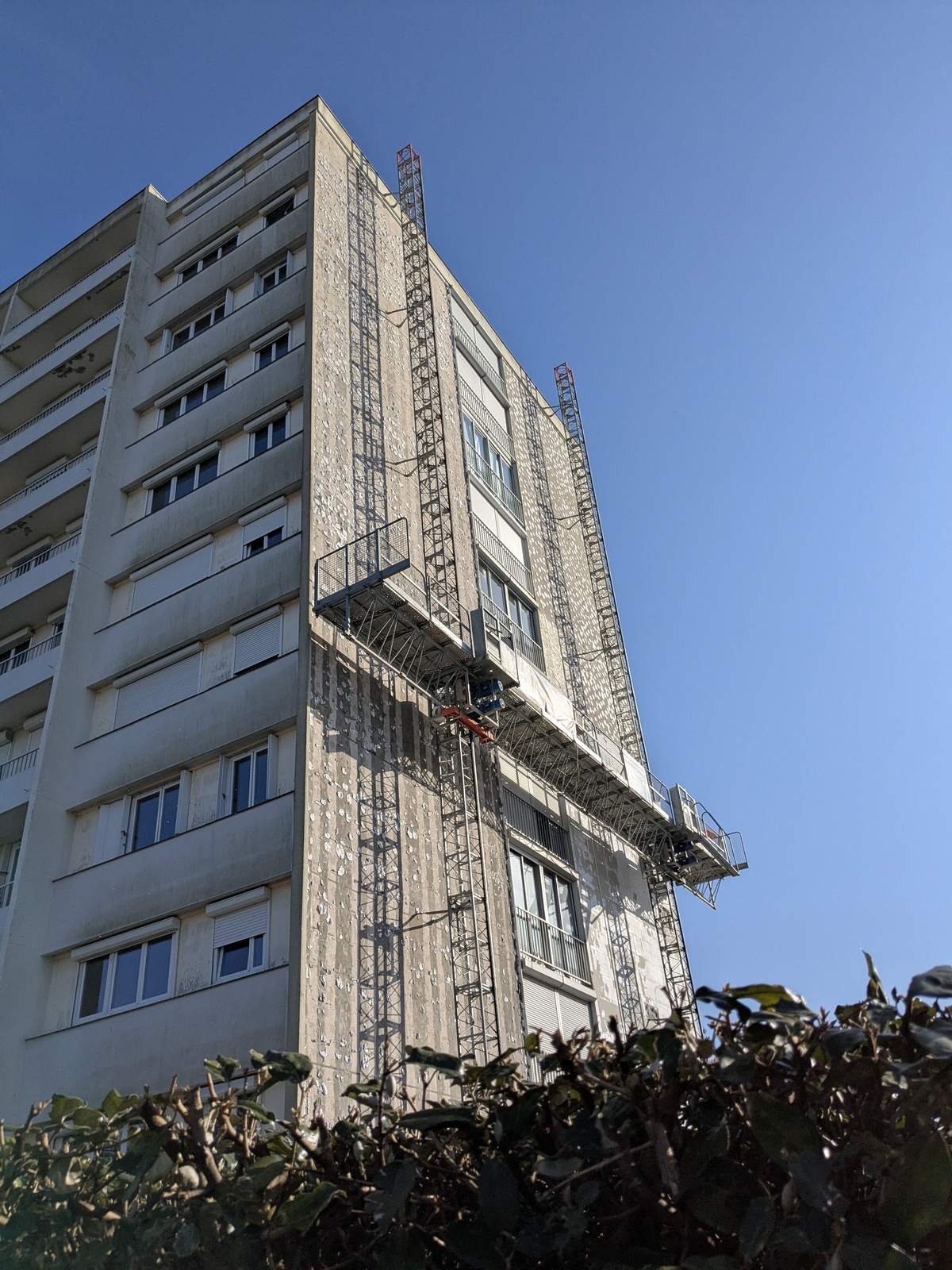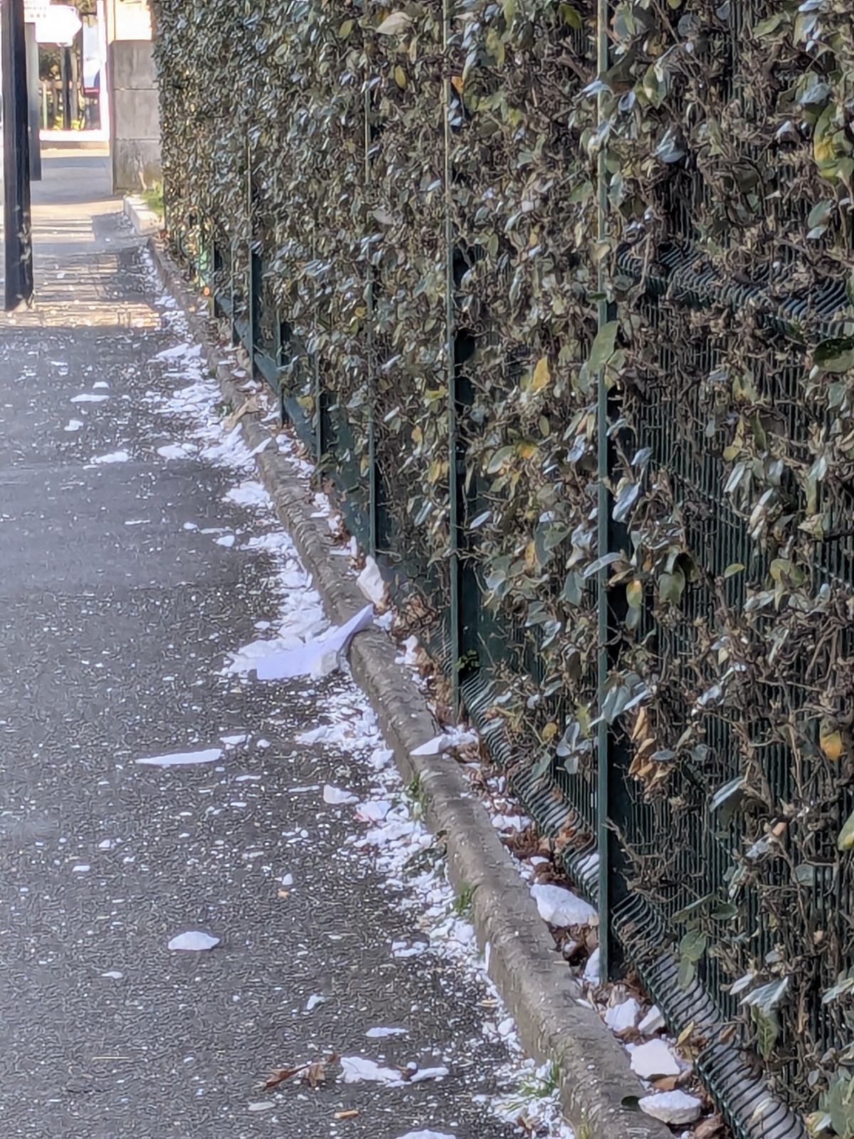 Le chantier de rénovation de la résidence du nid de pie donne lieu à l'envol d'une quantité importante de polystyrènes dans les alentours, notamment la haie vive séparative avec le boulevard Victor Beaussier et le trottoir adjacent (niveau arrêt CNFPT).