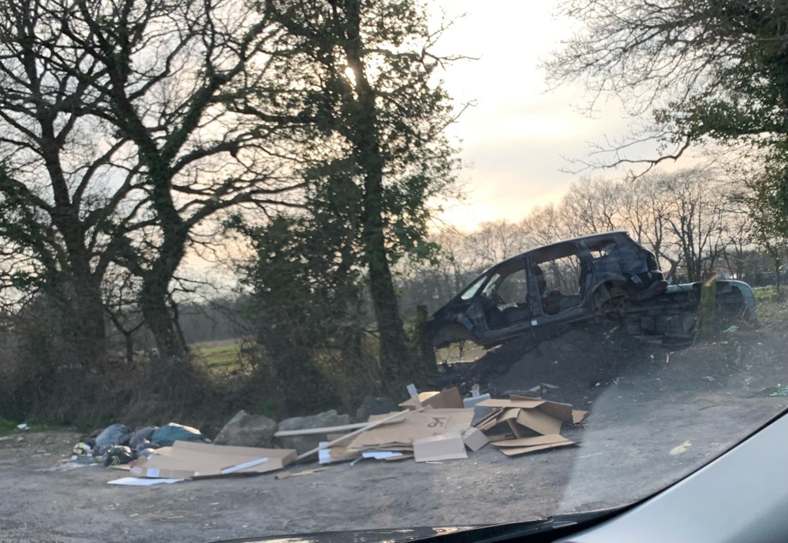 Décharges sauvages déchets divers (carcasses véhicules, cartons, bois, sacs poubelle, etc..)