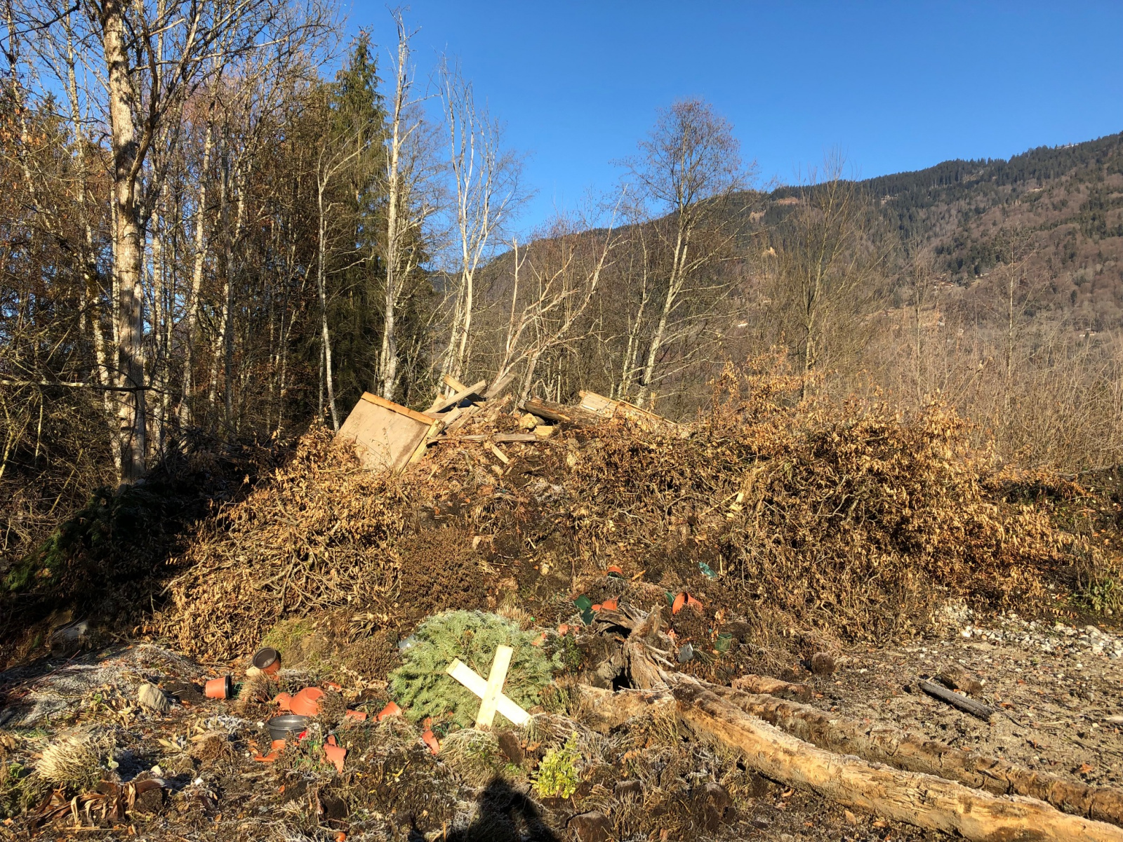 Une sentinelle a constaté que les employés des services techniques de la commune de Morillon utilisent une zone naturelle pour déposer leurs déchets verts et autres, ainsi que plusieurs matériaux inertes.