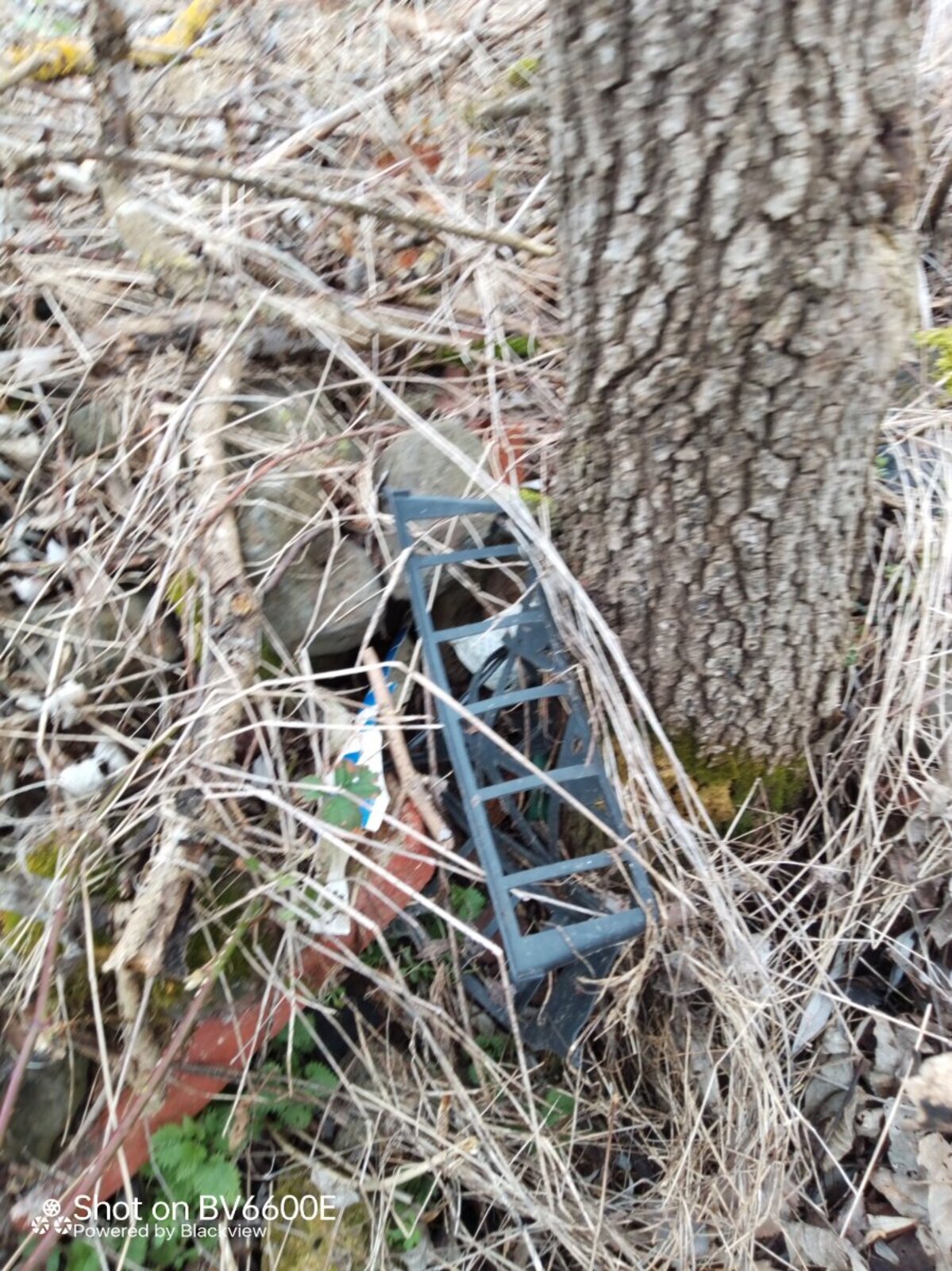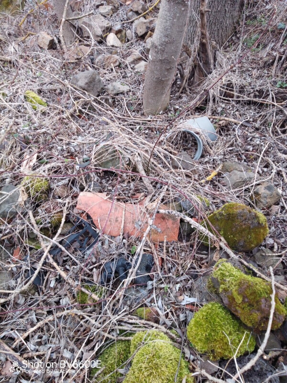 Nombreux déchets plastiques et de chantier (carreaux briques, tuiles, ferraille...), dans un fossé le long d'un chemin d'accès à des parcelles agricoles.