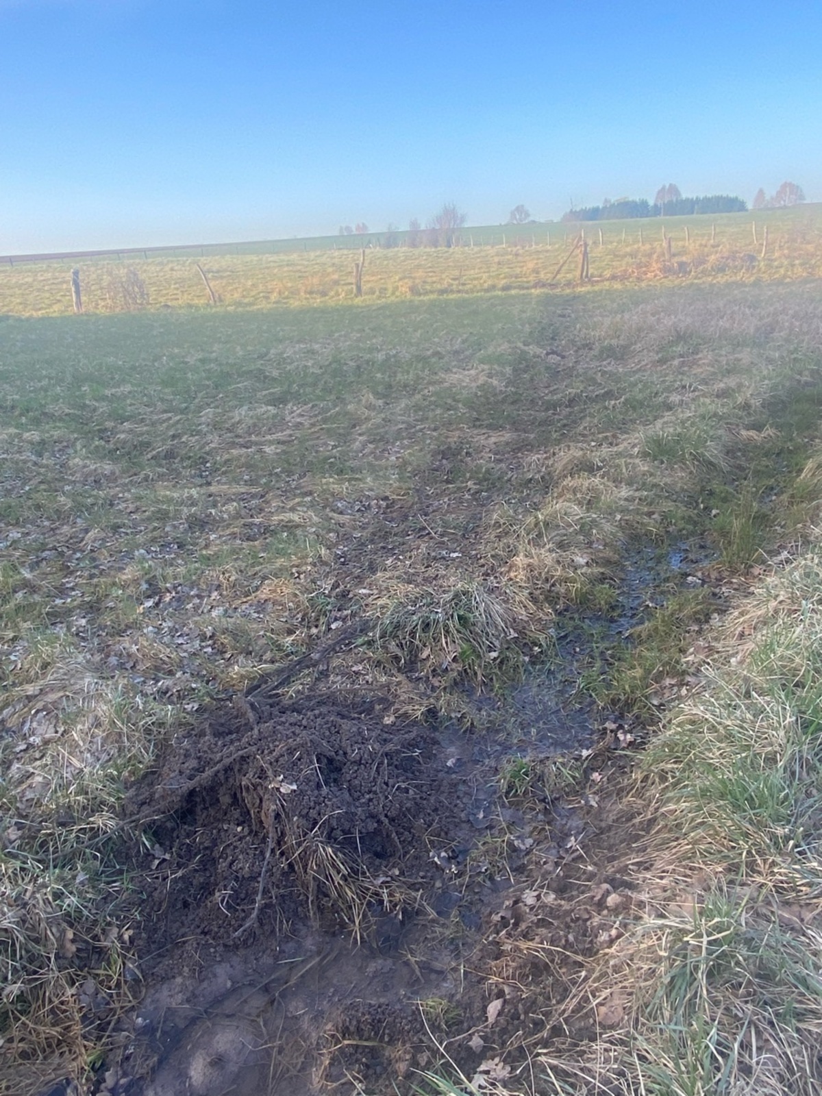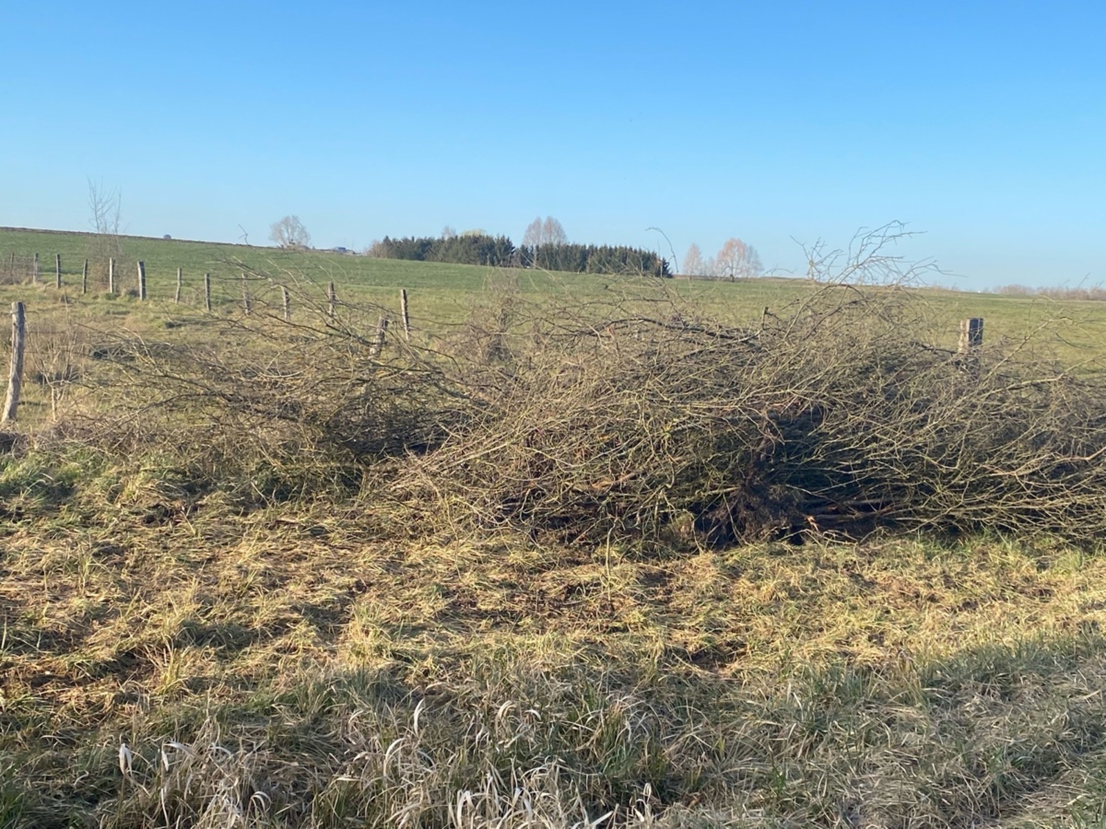 Arrachage d’une haie linéaire (protégée au titre de la Politique Agricole Commune) en bordure extérieure d’un parc après le 15 mars.