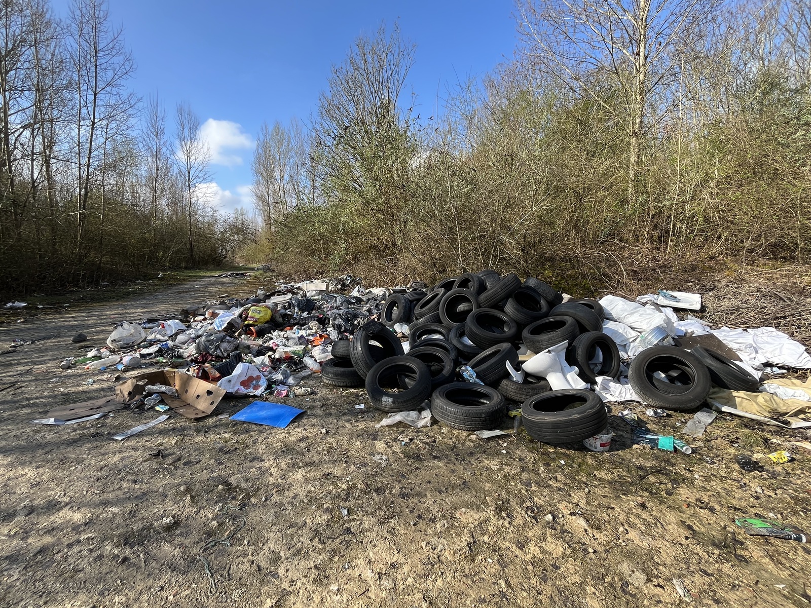 déchets divers: pneus, sacs poubelle, bâches, pots de peinture…
