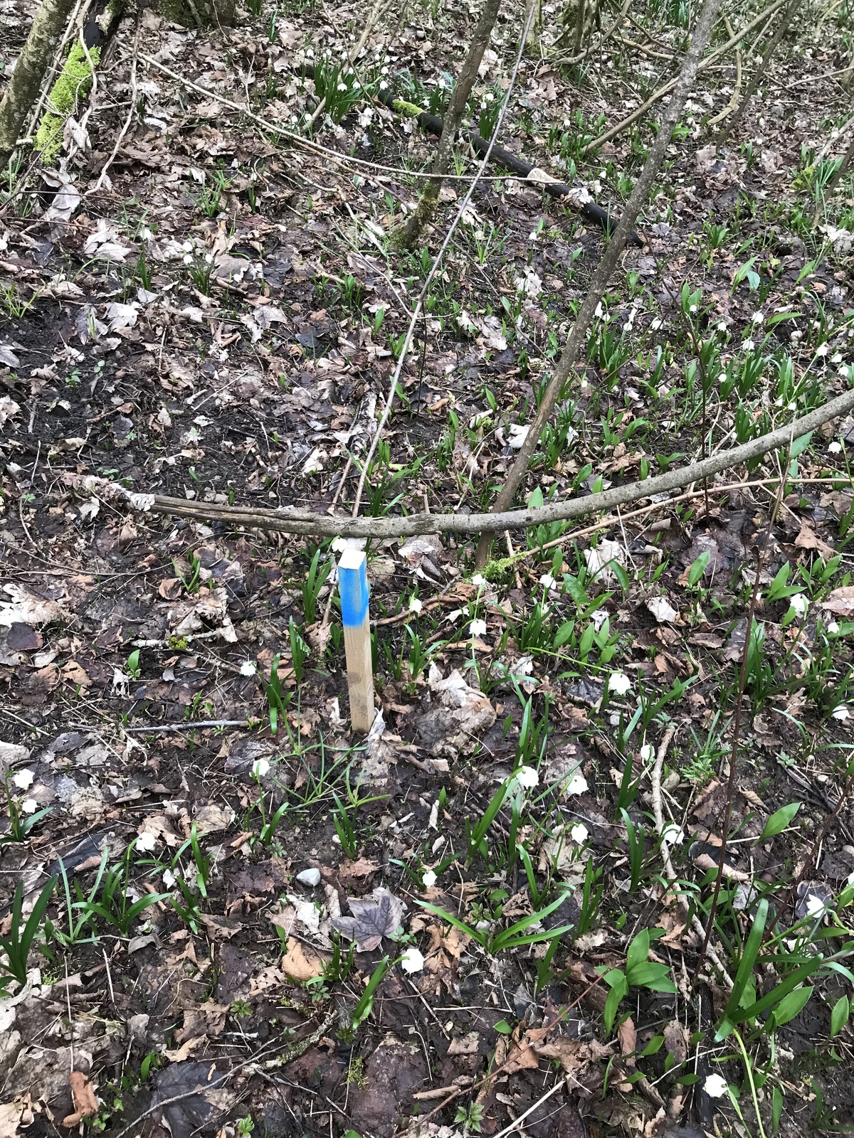 Constat d’un balisage et piquetage coloré en bleu qui donne accès à un site d’habitat de blaireaux. Ce balisage est visible depuis le haut du village au dessus du hameau chez Vauthier. Suspicion de chasse illégale.