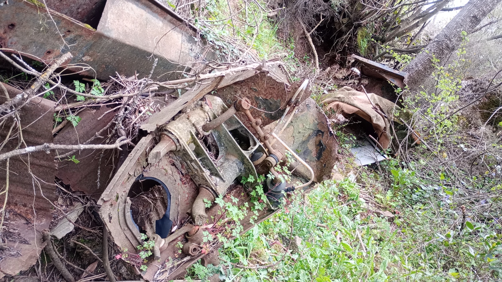 Dépôt sauvage de déchets en zone naturelle, dans le lit d'un petit cours d'eau.