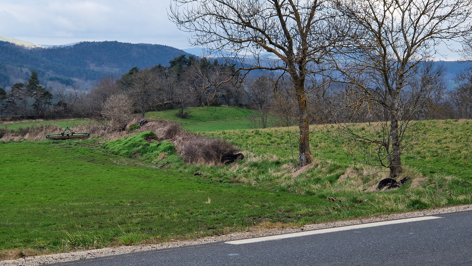 Plusieurs pneus ont été déposés dans une haie