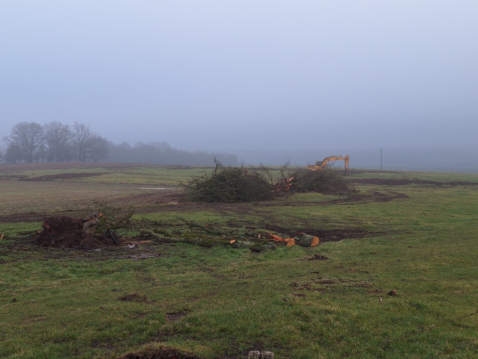 Retournement d'une prairie permanente d'une dizaine d'hectares avec la destruction de buissons et d'arbres.