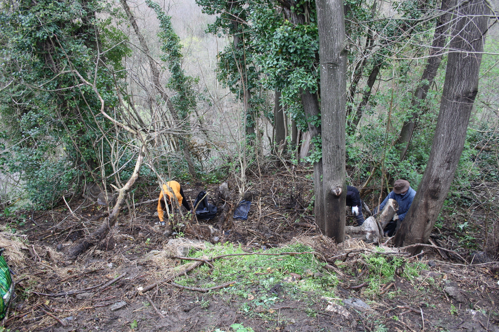 Ce samedi 29 mars, une équipe composée d'une vingtaines de volontaires de la commune de Mur-sur Allier (dont le Maire et plusieurs élus), de bénévoles de France Nature Environnement, du Conservatoire des Espaces Naturels (CEN Auvergne) et du Groupe Spéléo Auvergnat (GSA) a remonté les pneus du fossé en bordure de falaise afin de les charger dans la benne mise à disposition, et ce malgré une météo compliquée.