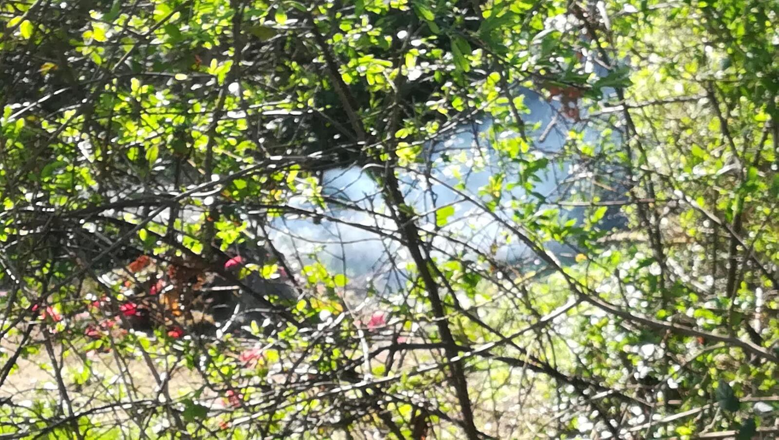Déchets verts brûlés sur le terrain d'un particulier, sans surveillance particulière.