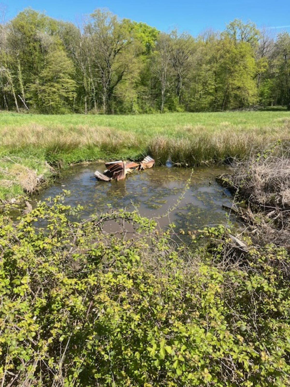 Comblement d'une mare avec des déchets et arrachage d'une haie sur plusieurs mètres.