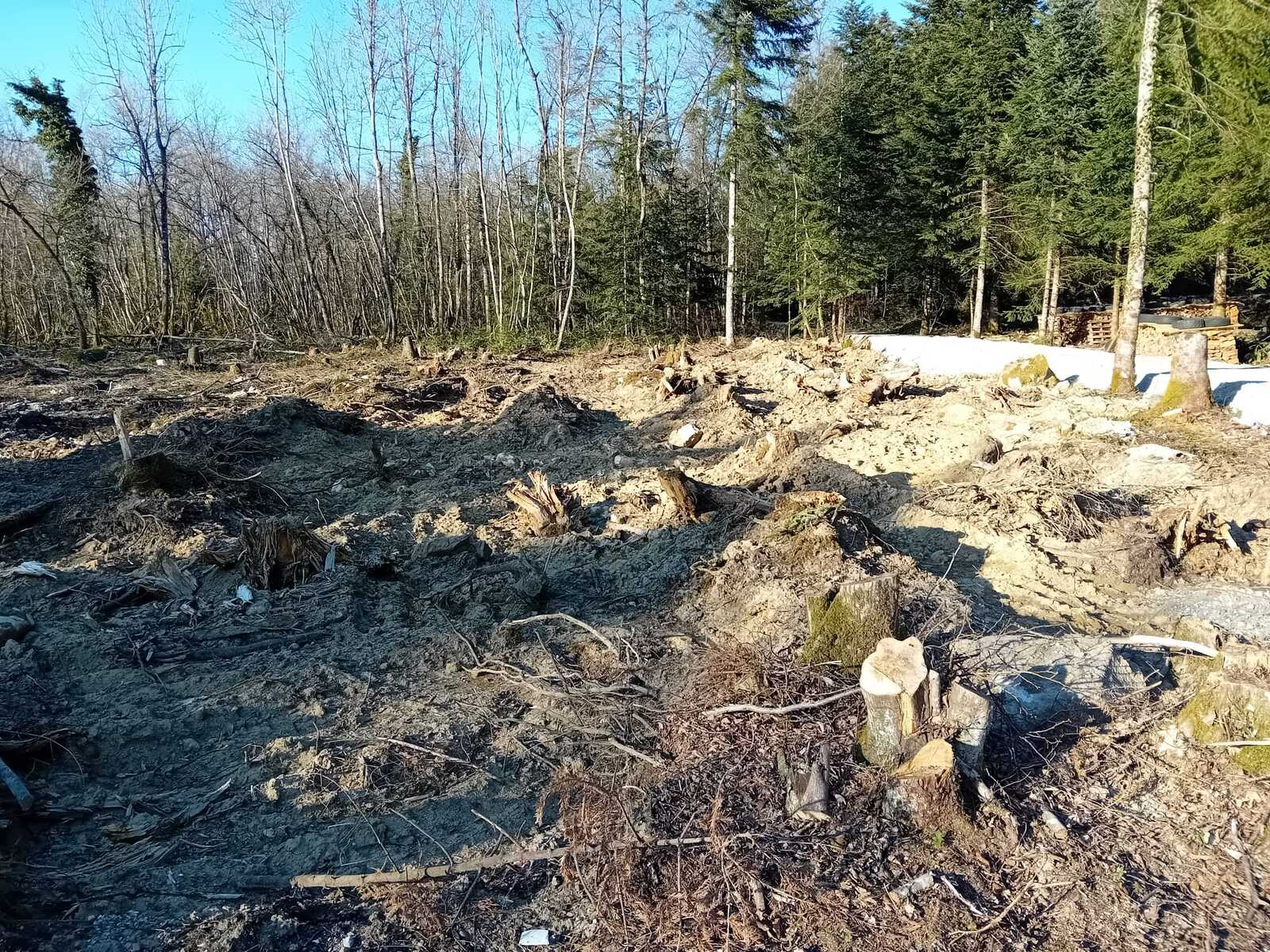 Travaux de défrichement sur des parcelles initialement classées en espace boisé classé. Des travaux d'affouillement ont été réalisés sur le site. Sont stockés régulièrement sur site des déchets inertes et non inertes.