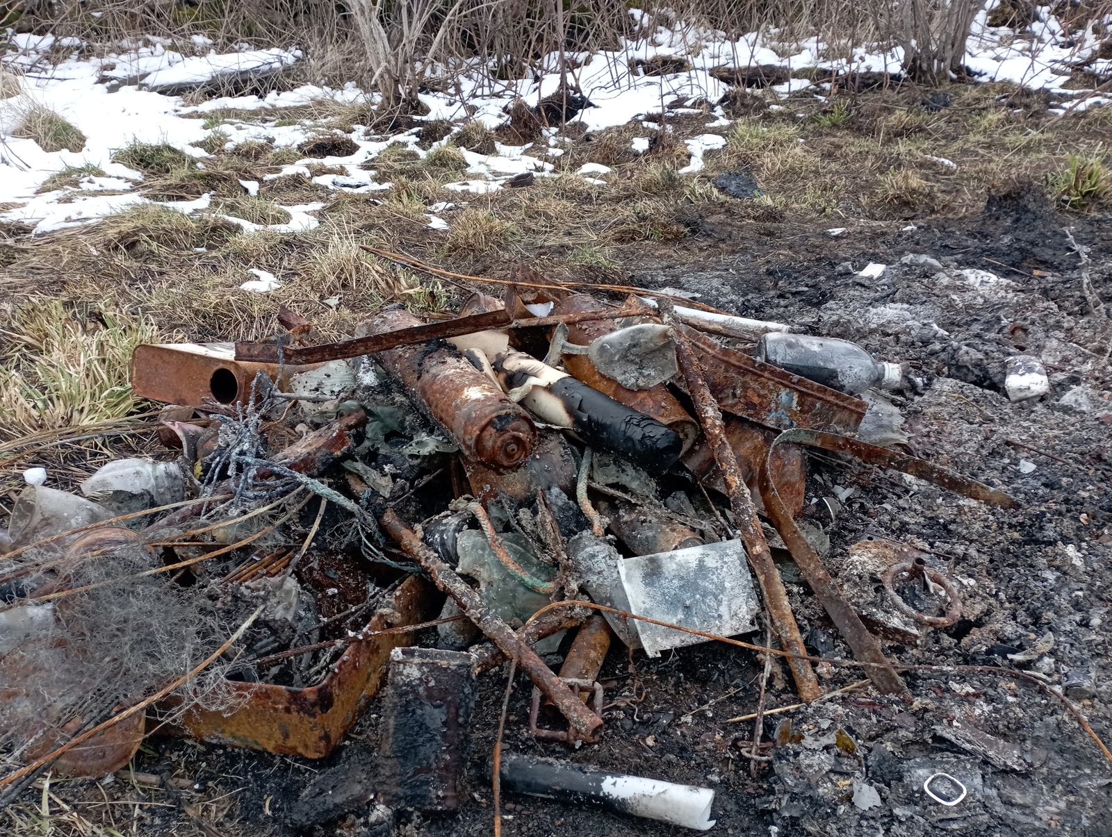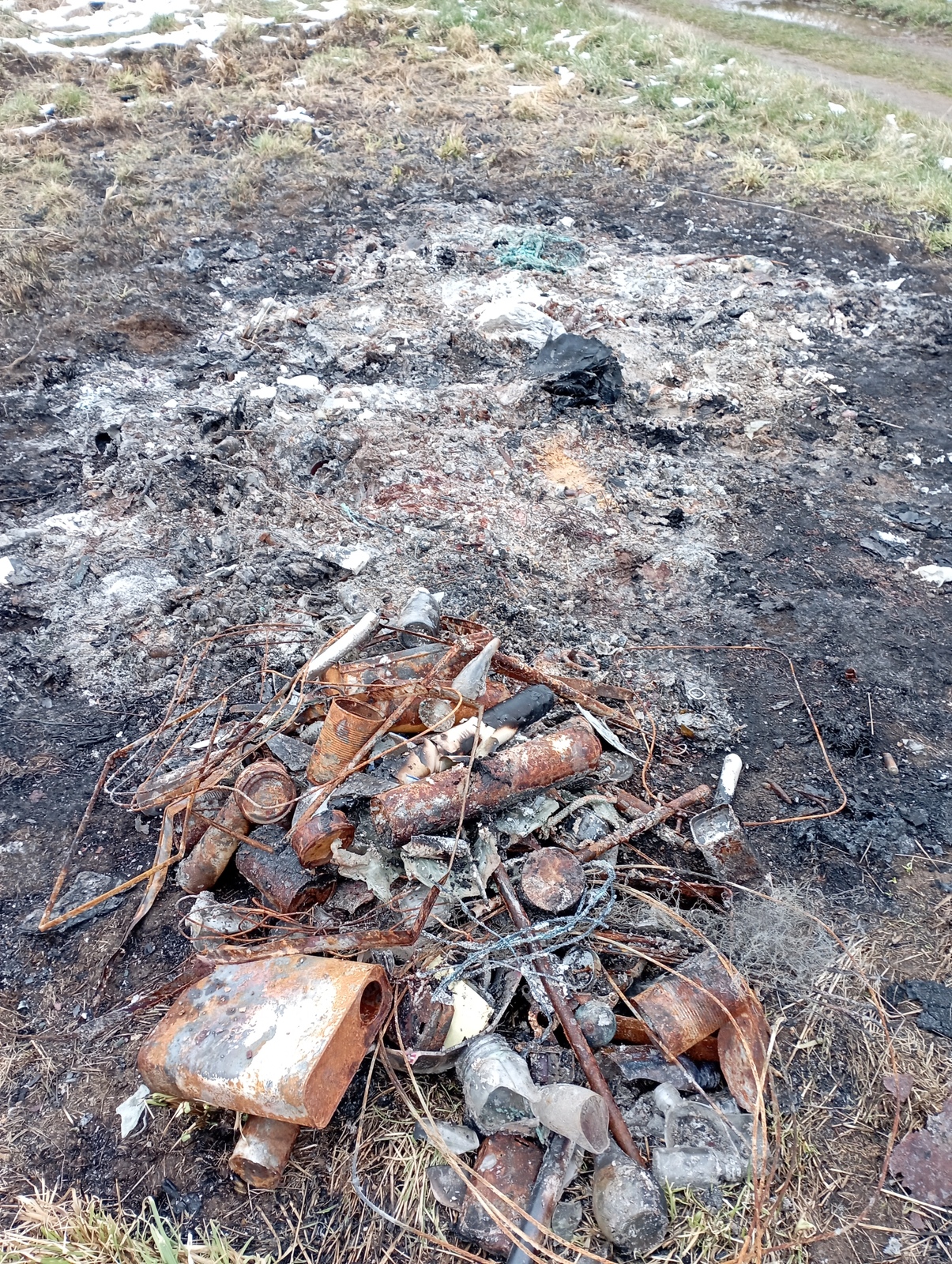 Brûlage de déchets (bombes aérosol, ampoules électrique, cannette en verre, ferrailles...) la date de brûlage n'est pas connue mais cette pratique semble régulière.