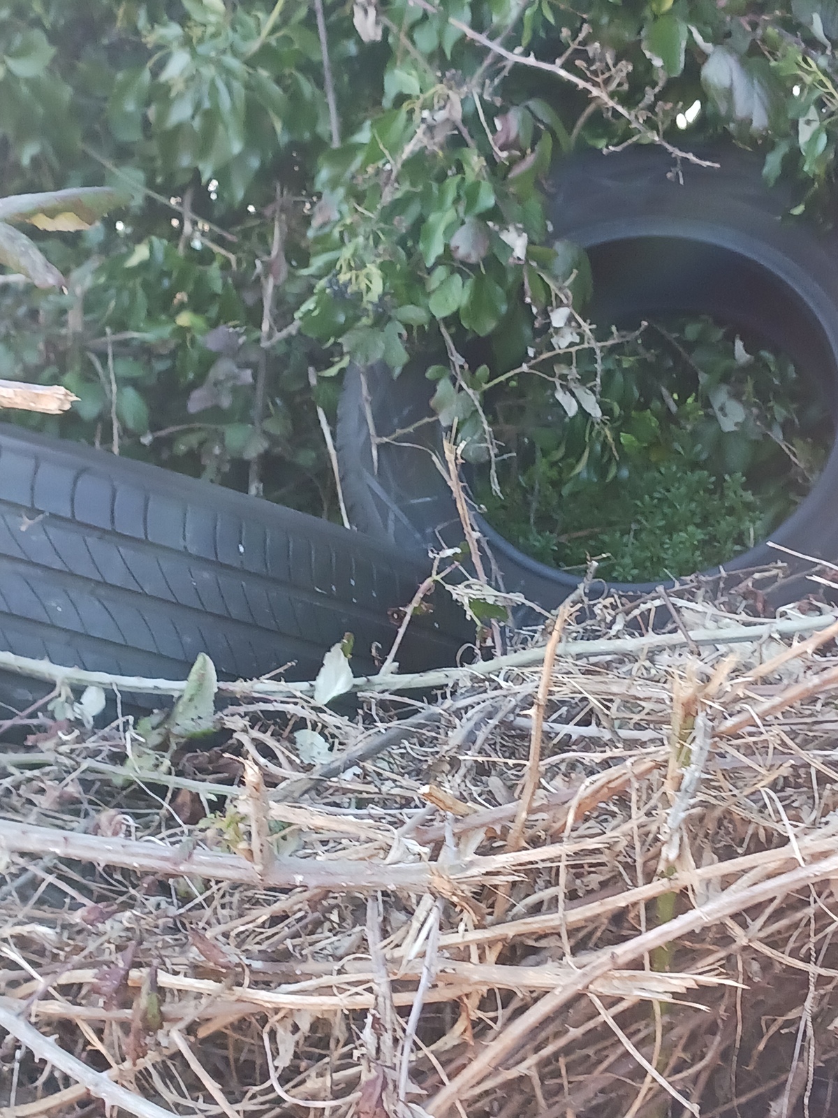 Dépôt sauvage de pneus, divers déchets ménagers