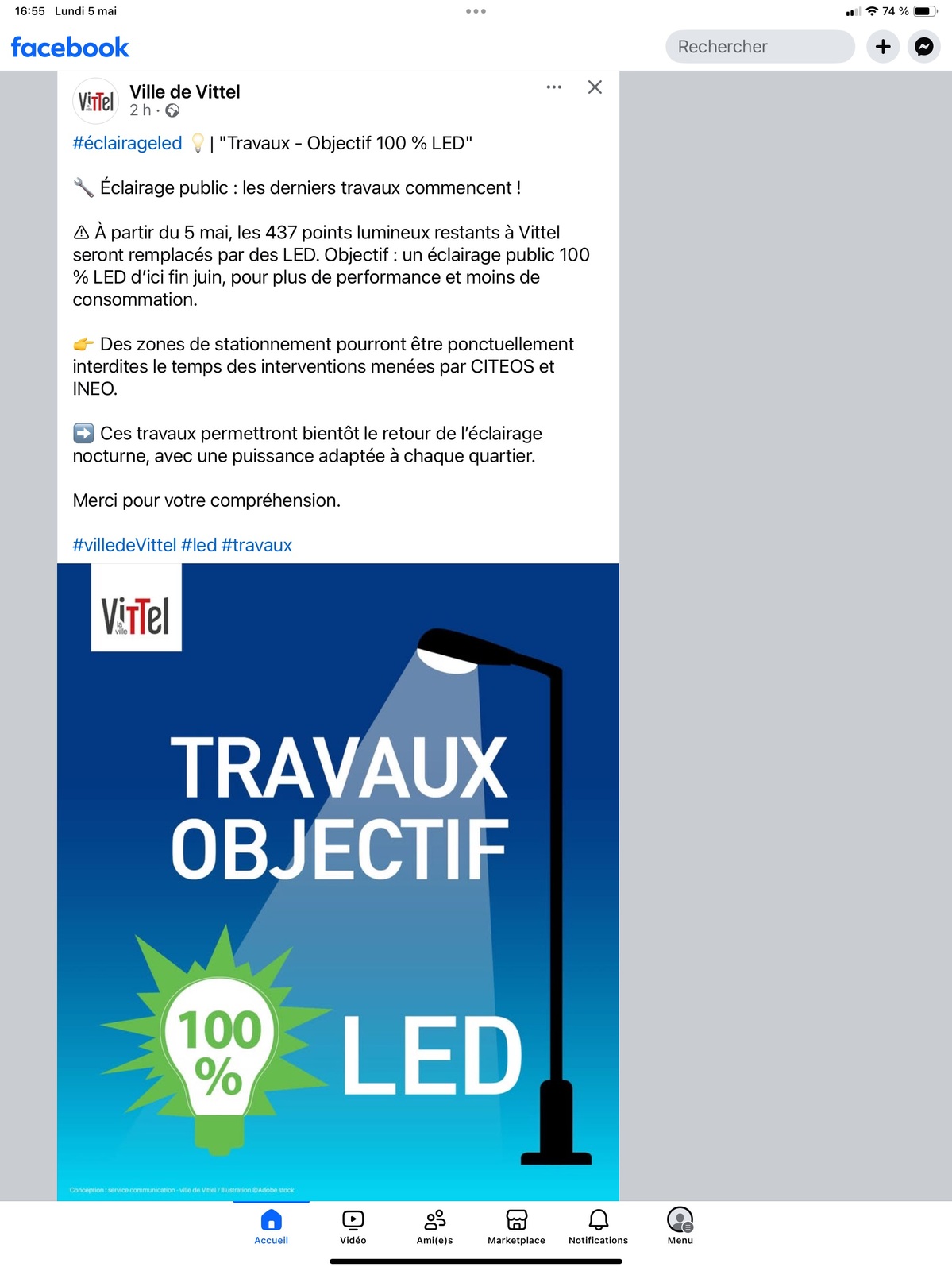Alors que la municipalité avait décidé, fin 2022, d'éteindre l'éclairage public de 23 h à 5 h, dans une grande partie du bourg, elle vient d'annoncer sur sa page Facebook le retour prochain dudit éclairage public au seul et simple motif que le remplacement de tous les points lumineux par des lampadaires à LED sera achevé prochainement.