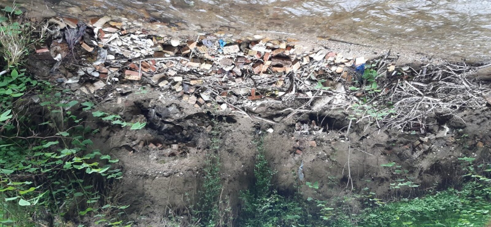 La décharge mise à jour par les eaux de la rivière semble remonter à plusieurs dizaines d'années, compte tenu des déchets qui apparaissent et de ceux qui ont dérivé vers l'aval.