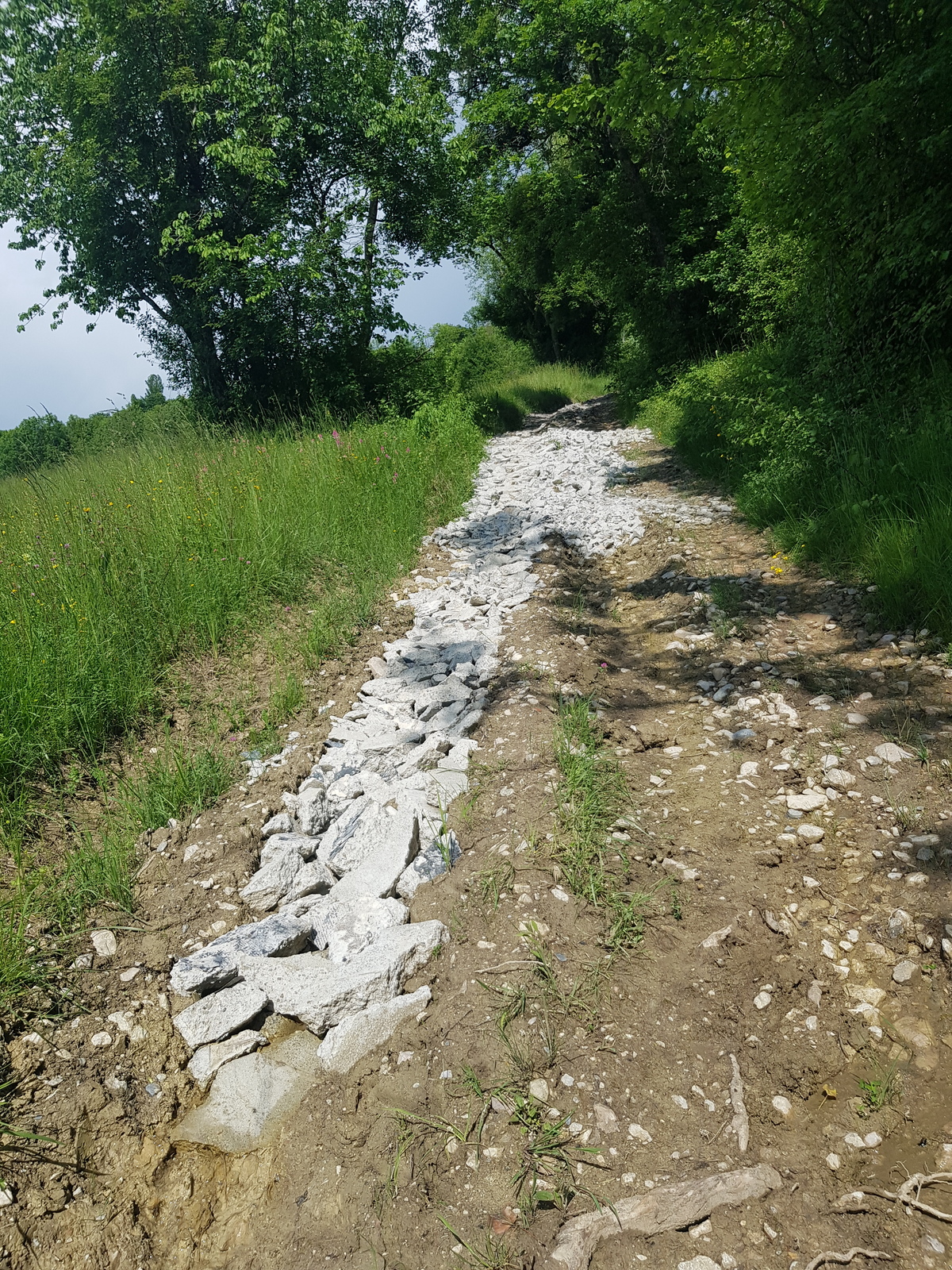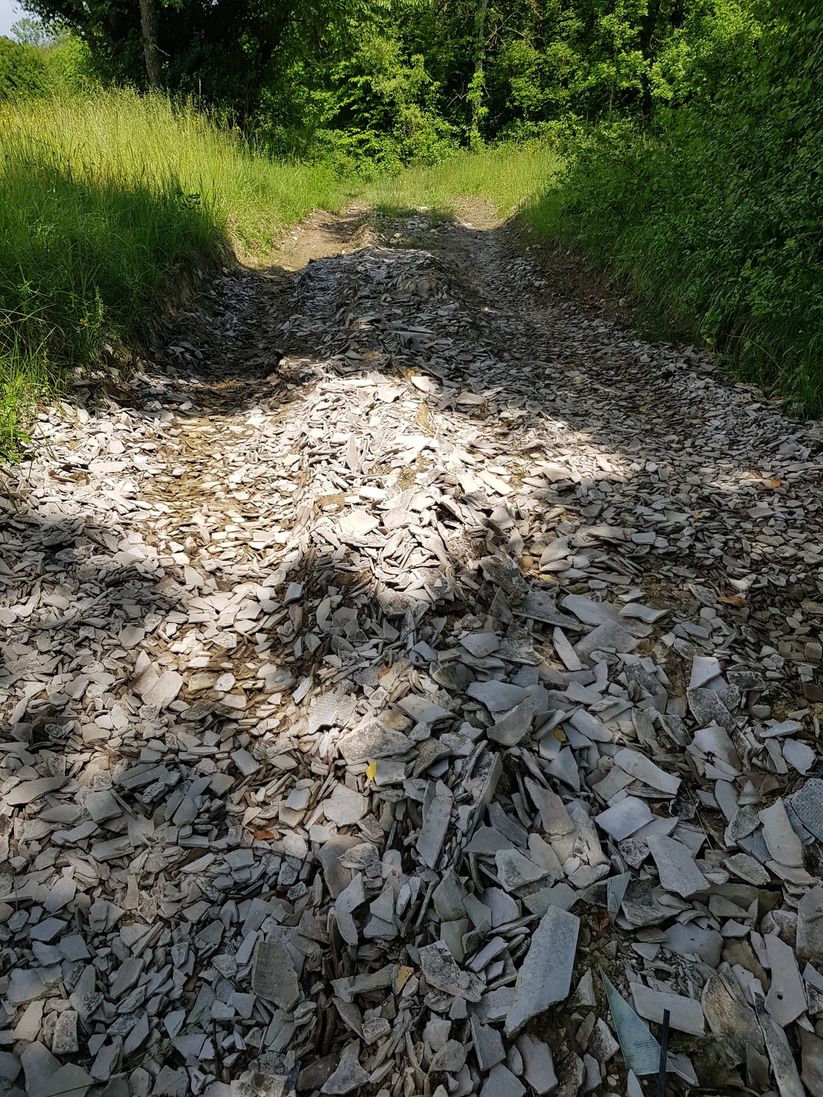 Des déchets de bâtiment ont été déversés sur un chemin communal, sur environ 30 mètres.