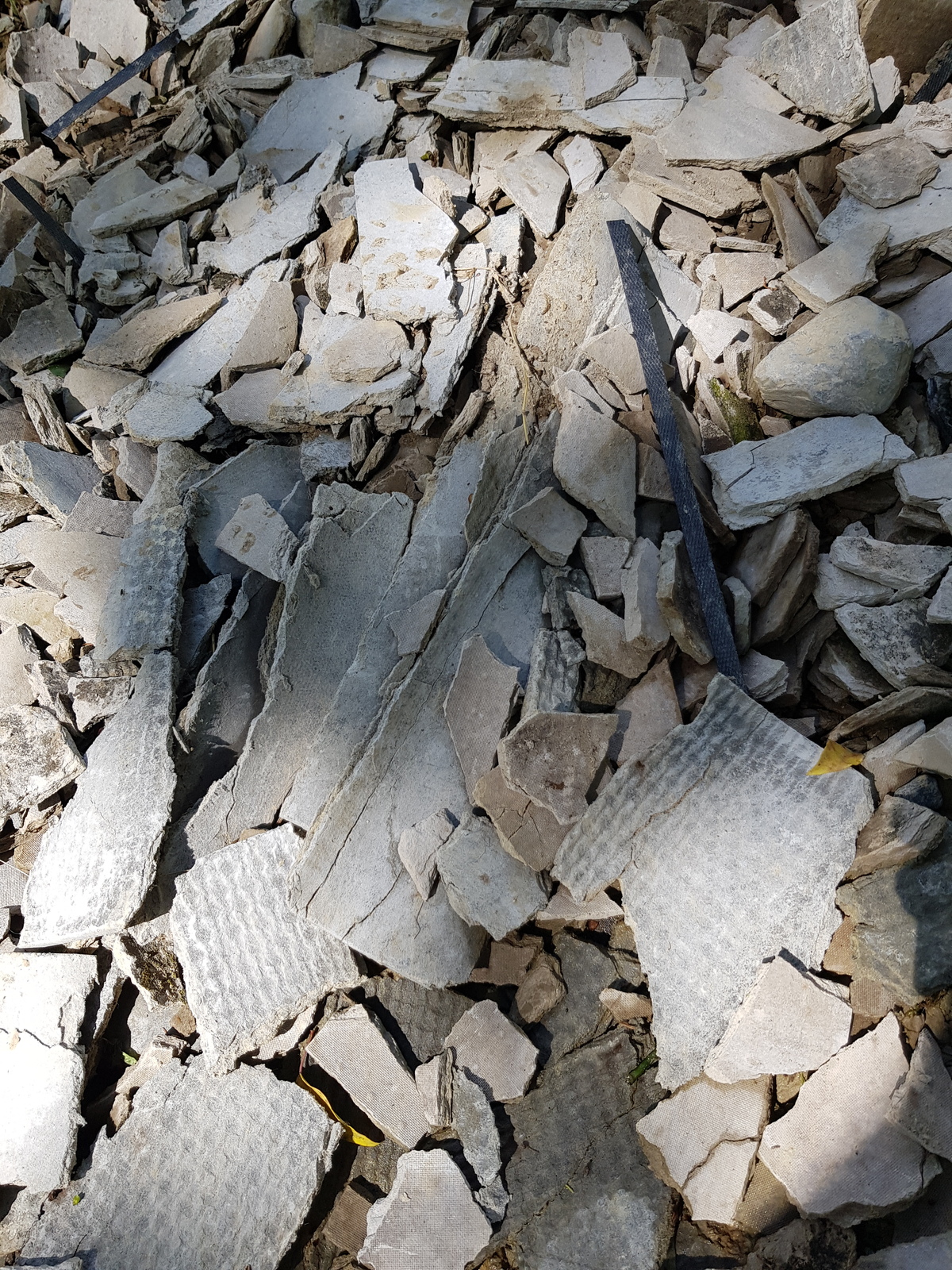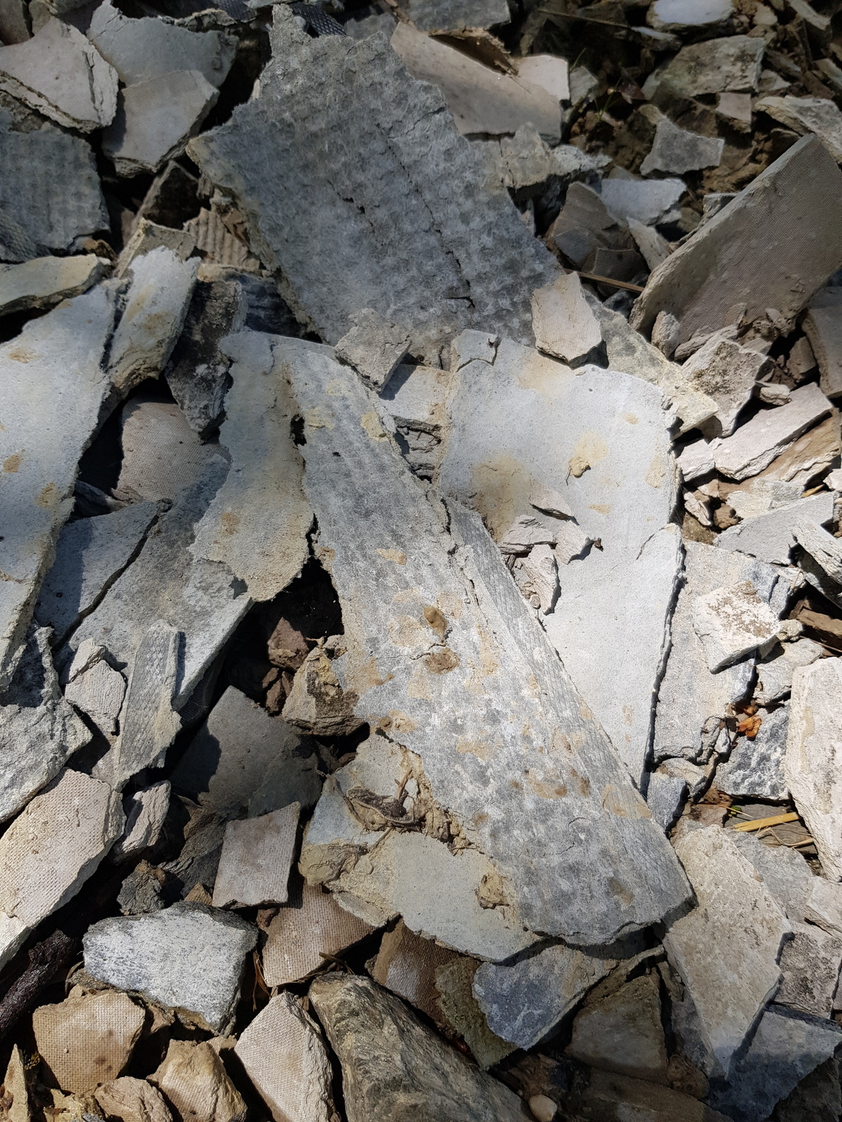 Ces déchets sont constitués de morceaux de matière ressemblant à des parpaings pour une part et d'autres morceaux de fibro ciment