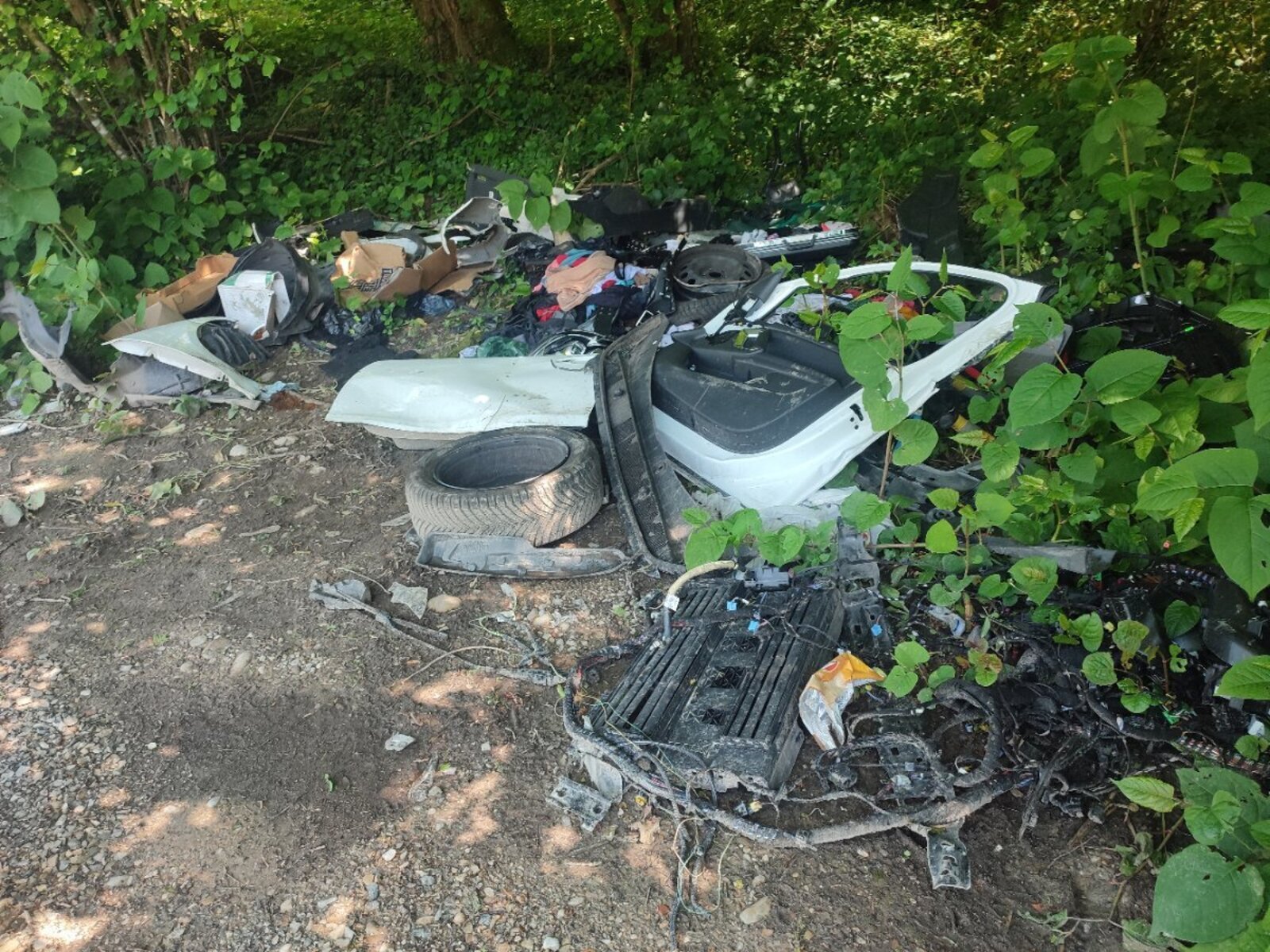 Dépôt de diverses pièces automobiles (pneus, portière...)