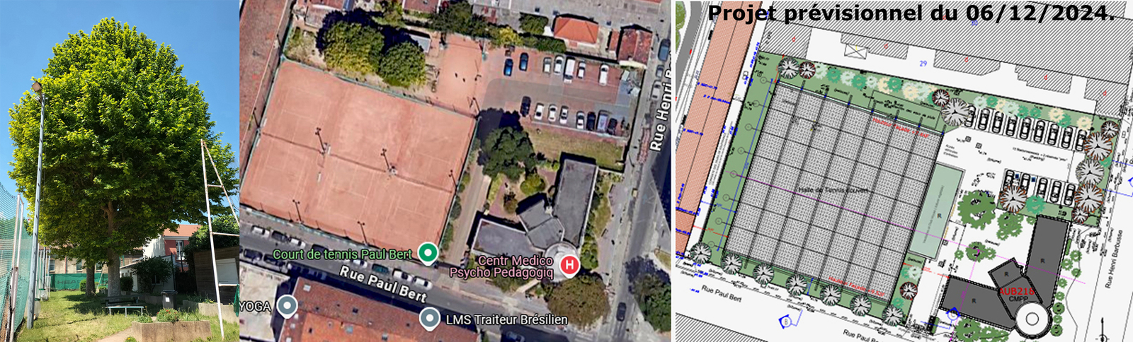 Le signalement informe de travaux d'aménagement prévus sur le terrain de tennis, rue Paul Bert à Aubervilliers qui prévoyaient - selon les échanges tenus entre les riverain-es et les services techniques de la ville - l'abattage de plusieurs platanes plantés a proximité du terrain.