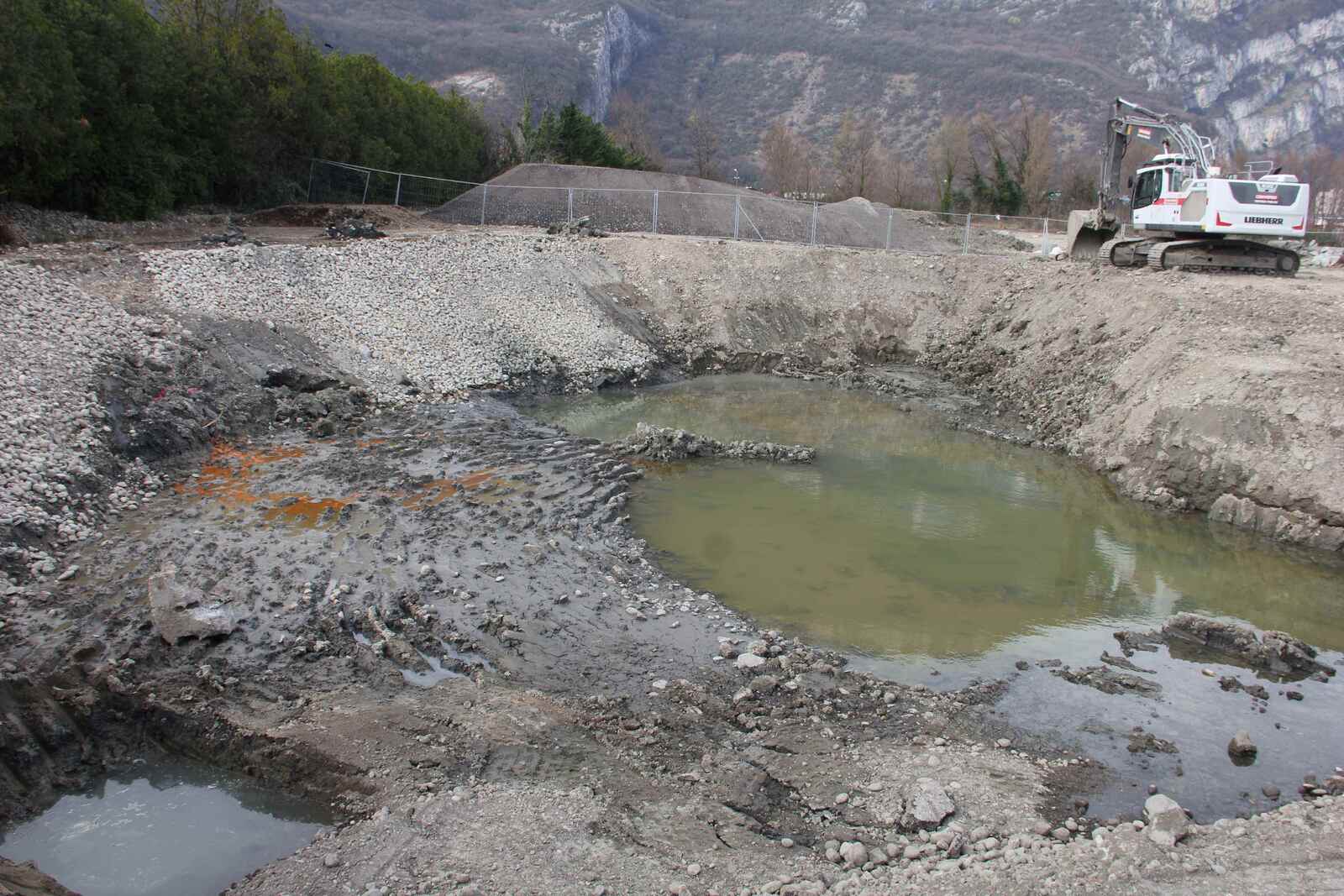 Sur le chantier de mise à l'air libre du ruisseau "La petite Saône" sur le secteur du projet Portes du Vercors, les travaux ont amené à l'air libre des terres manifestement polluées.