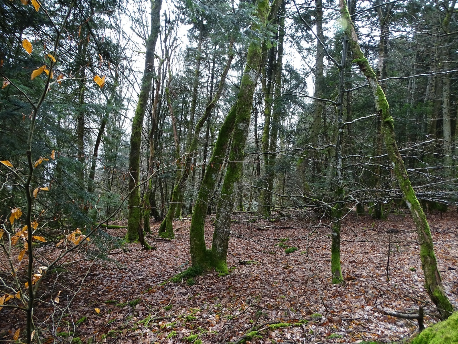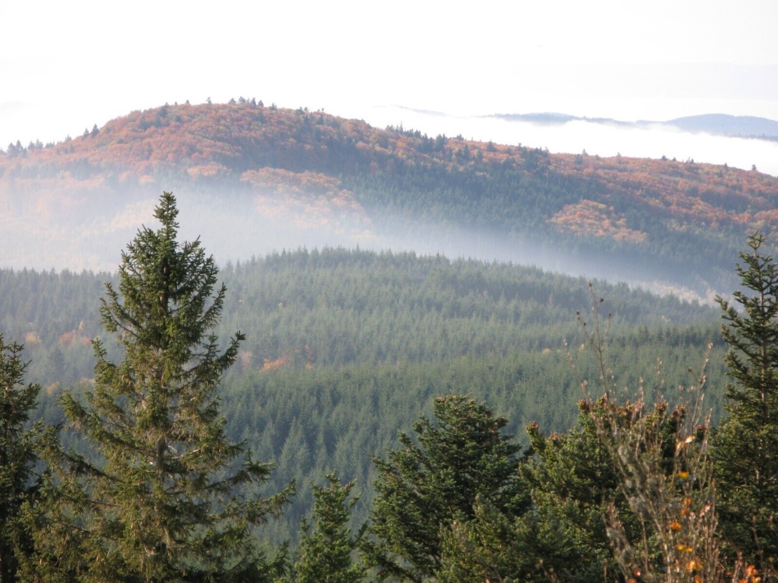 Dans le Haut-Beaujolais, les forêts de feuillus de type hêtraie-sapinière, forêt naturelle locale, sont fortement concurrencées par la culture intensive d'essences exotiques comme le sapin Douglas, qui forment des forêts souvent très pauvres en biodiversité.