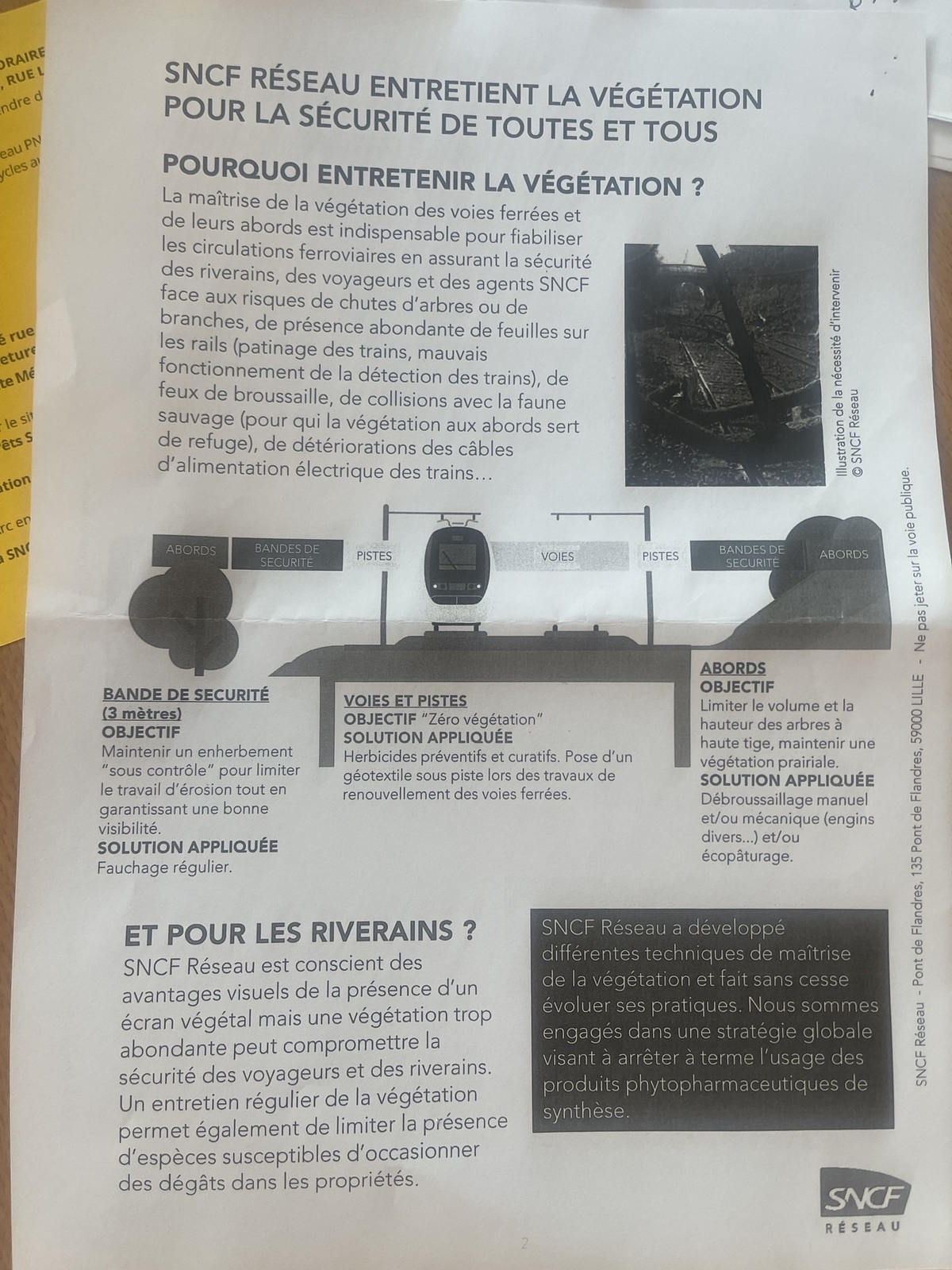 Transmission d'un courrier concernant le défrichage des bords de voie SNCF :