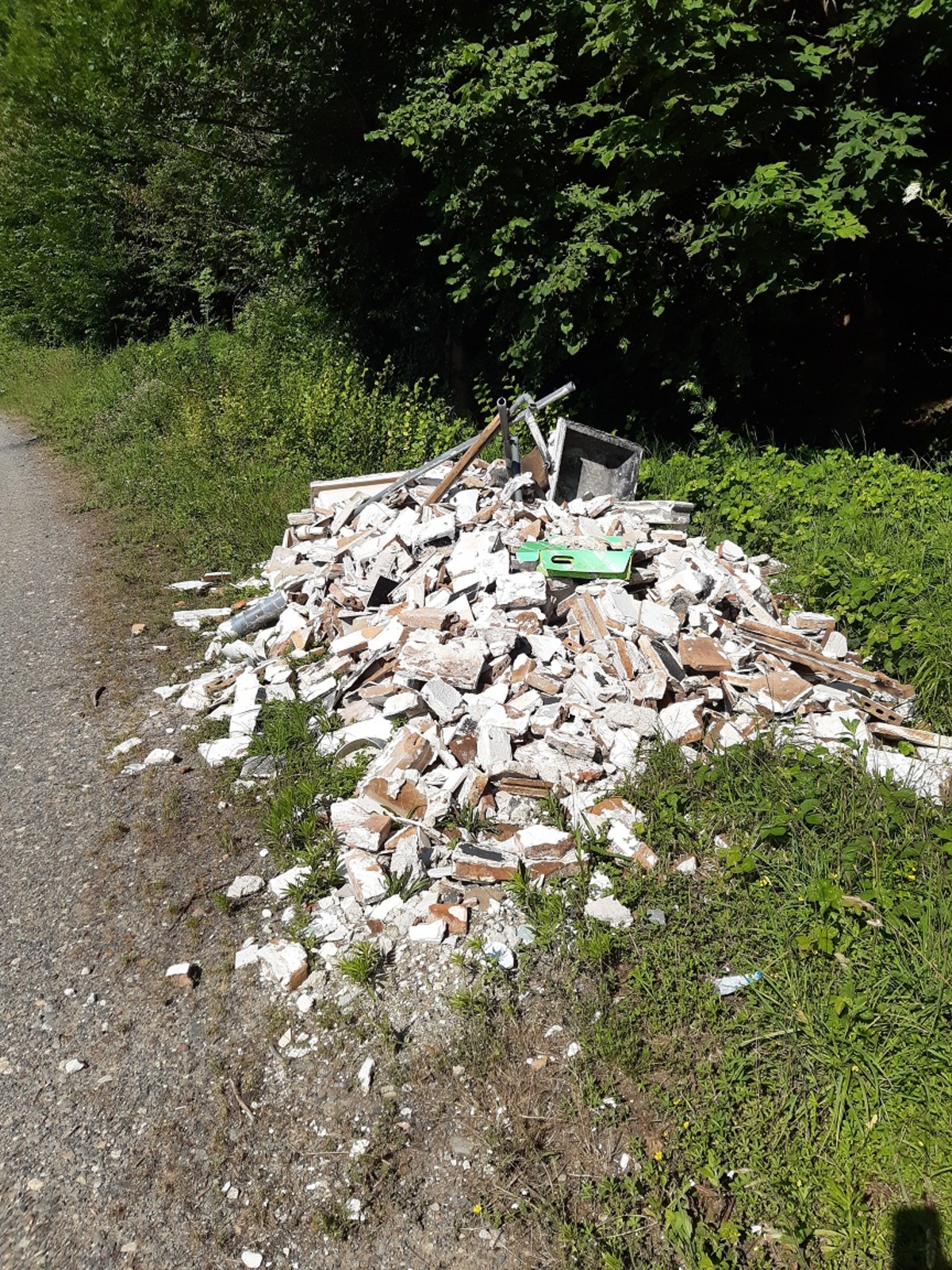 Le parcours est jalonné de déchets sur ce chemin qui longe l'Ambène.