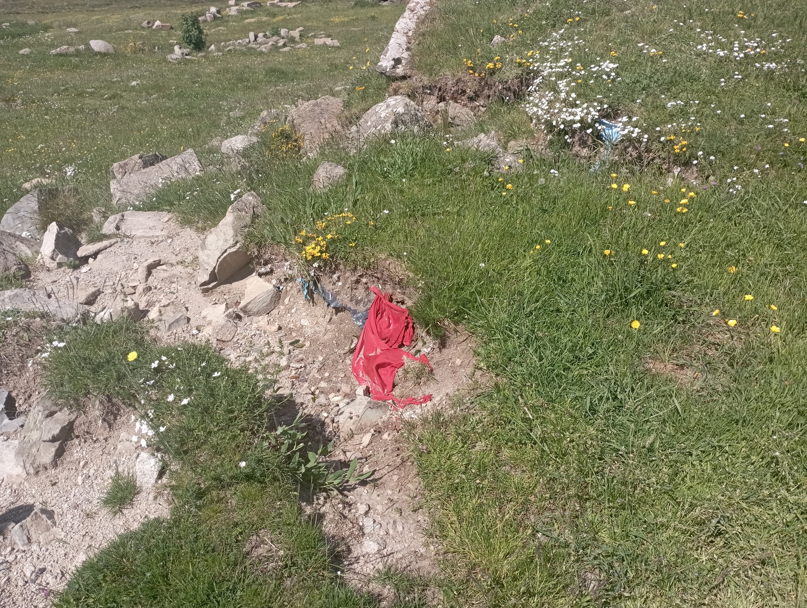 Affleurement de plastiques enterrés, probablement lié à une ancienne décharge communale.
