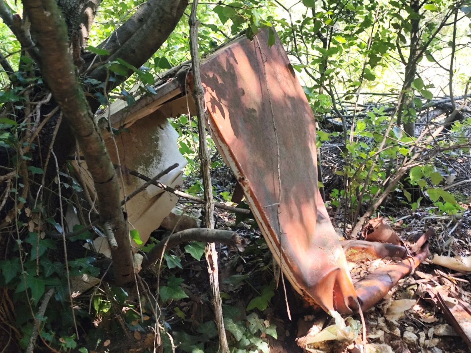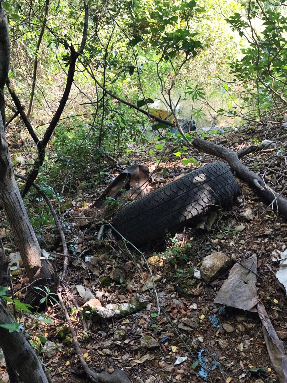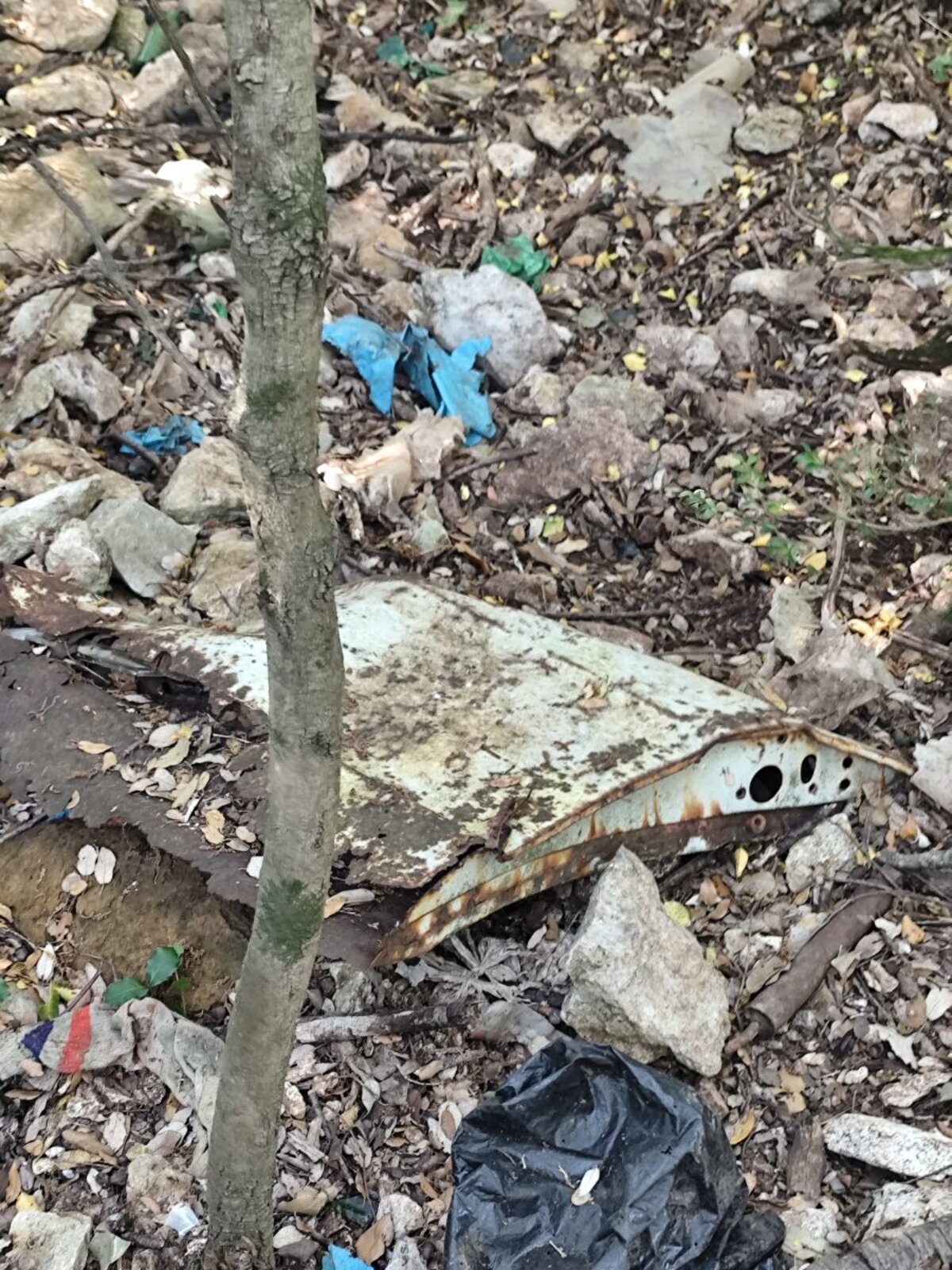 Cette décharge se trouve en amont d’un ruisseau. Au-delà de poser un problème de pollution des sols, elle peut également entraîner une pollution des eaux.