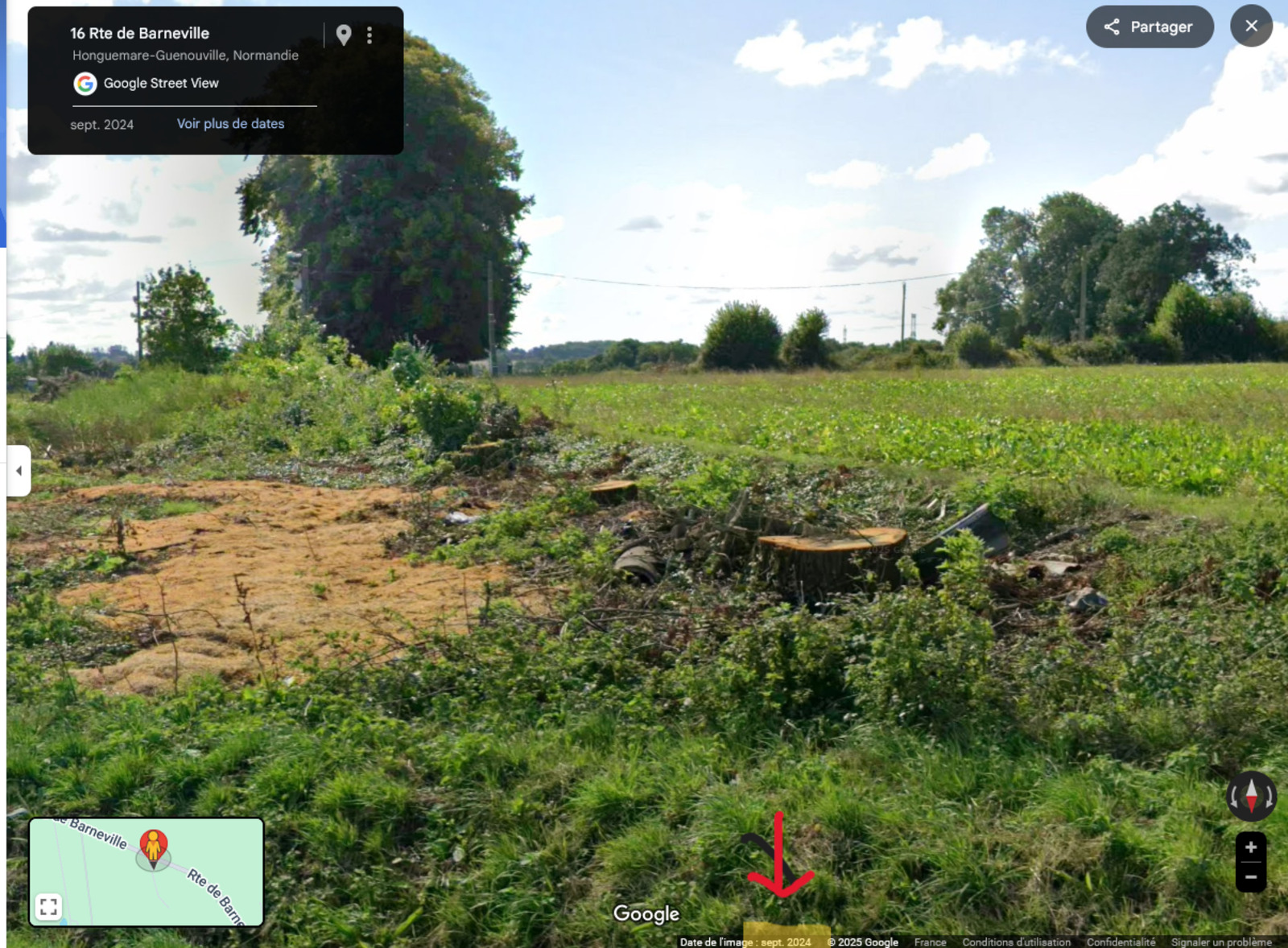 Arrachage d'un alignement d'arbres présents sur la couche nationale de référence des haies linéaires en France métropolitaine et classé dans le diagnostic du PLUI de la Communauté de Communes de Roumois Seine, en cours d'élaboration.