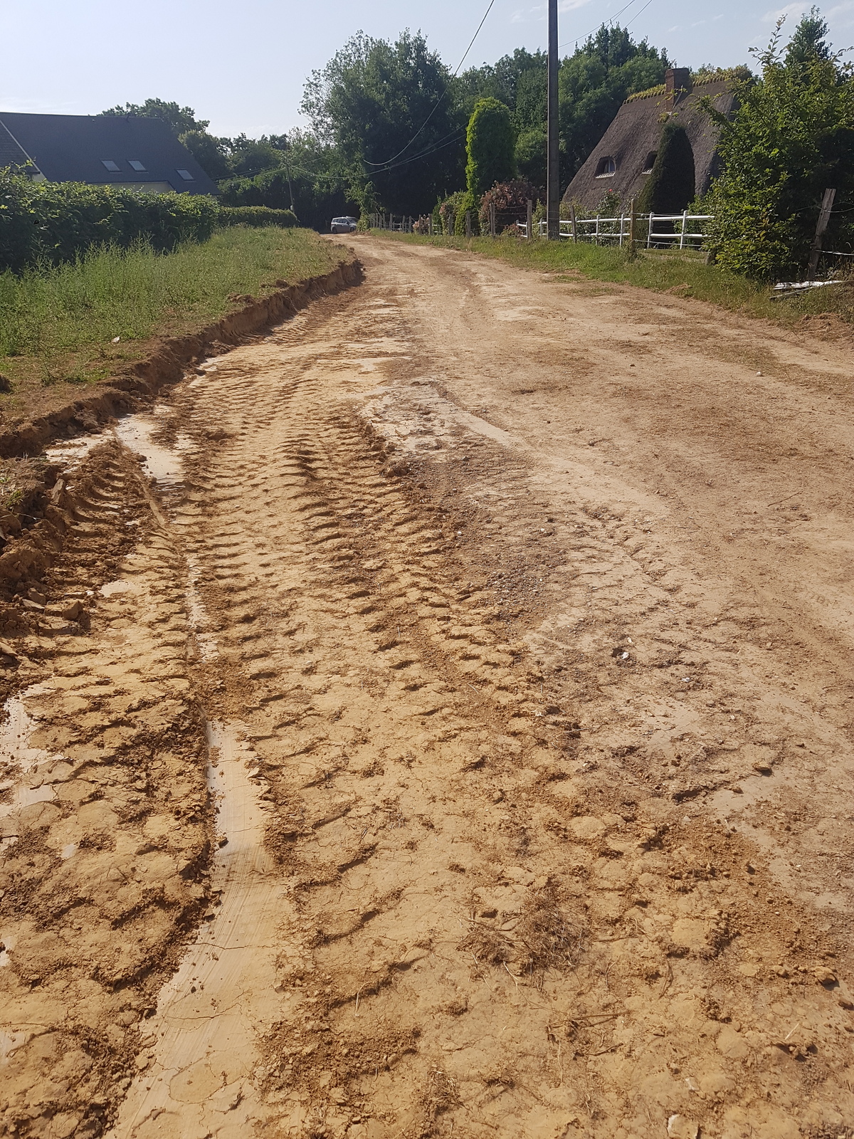 Création d'une route sur une prairie