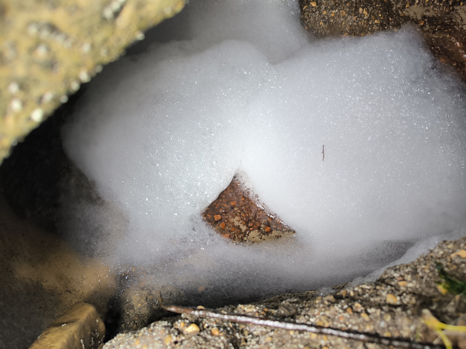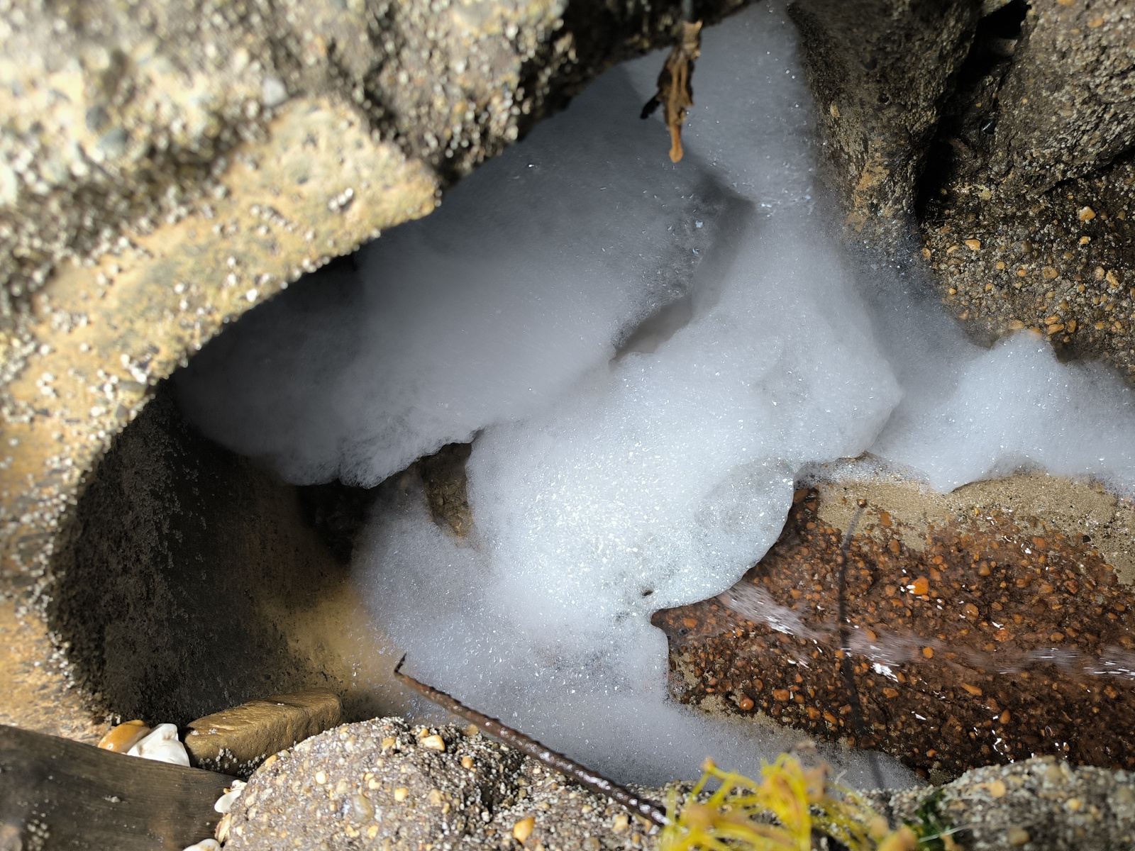 Suspicion de pollution chimique : présence anormale d'une grande quantité de mousse au niveau du regard de l’exutoire situé à droite de la plage de la Source