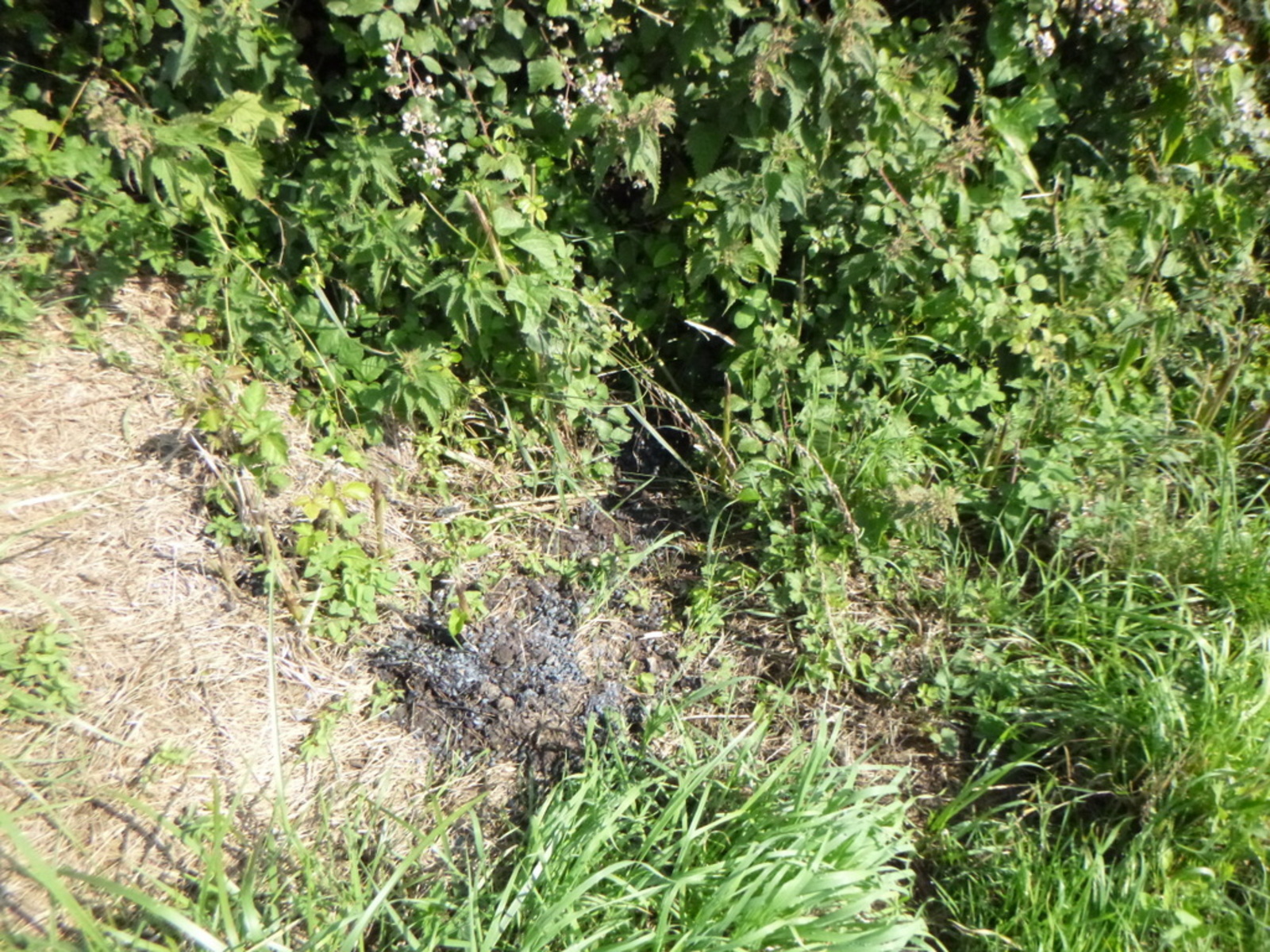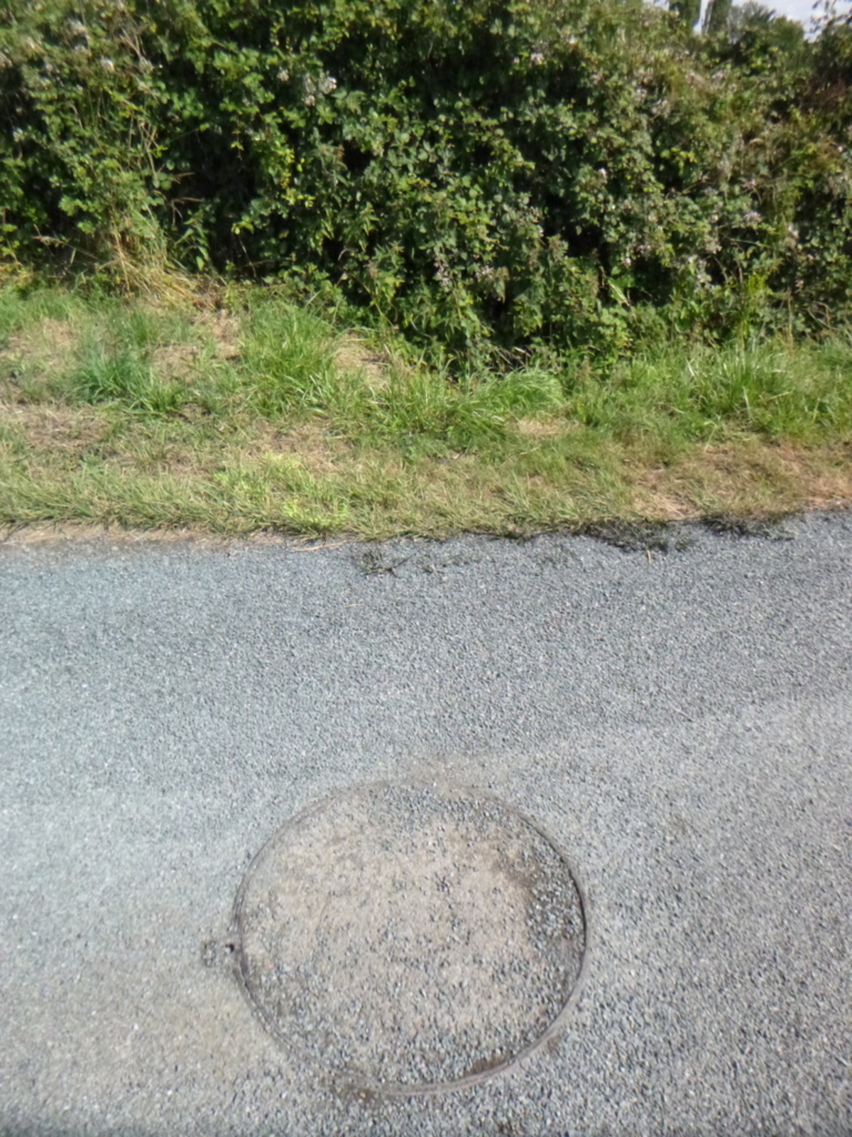 Abandon de déchets dans le cadre de la réfection de la chaussée de la route départementale 99. Les déchets accumulés sur différents regards situés sur la chaussée ont été raclés et déposés directement sur le bas côté, dans la végétation. On y trouve notamment des gravillons et du bitume.