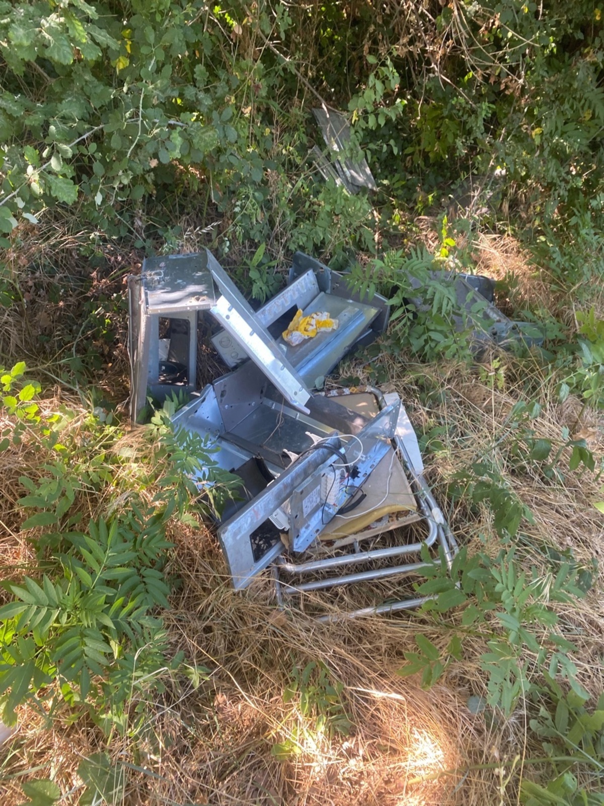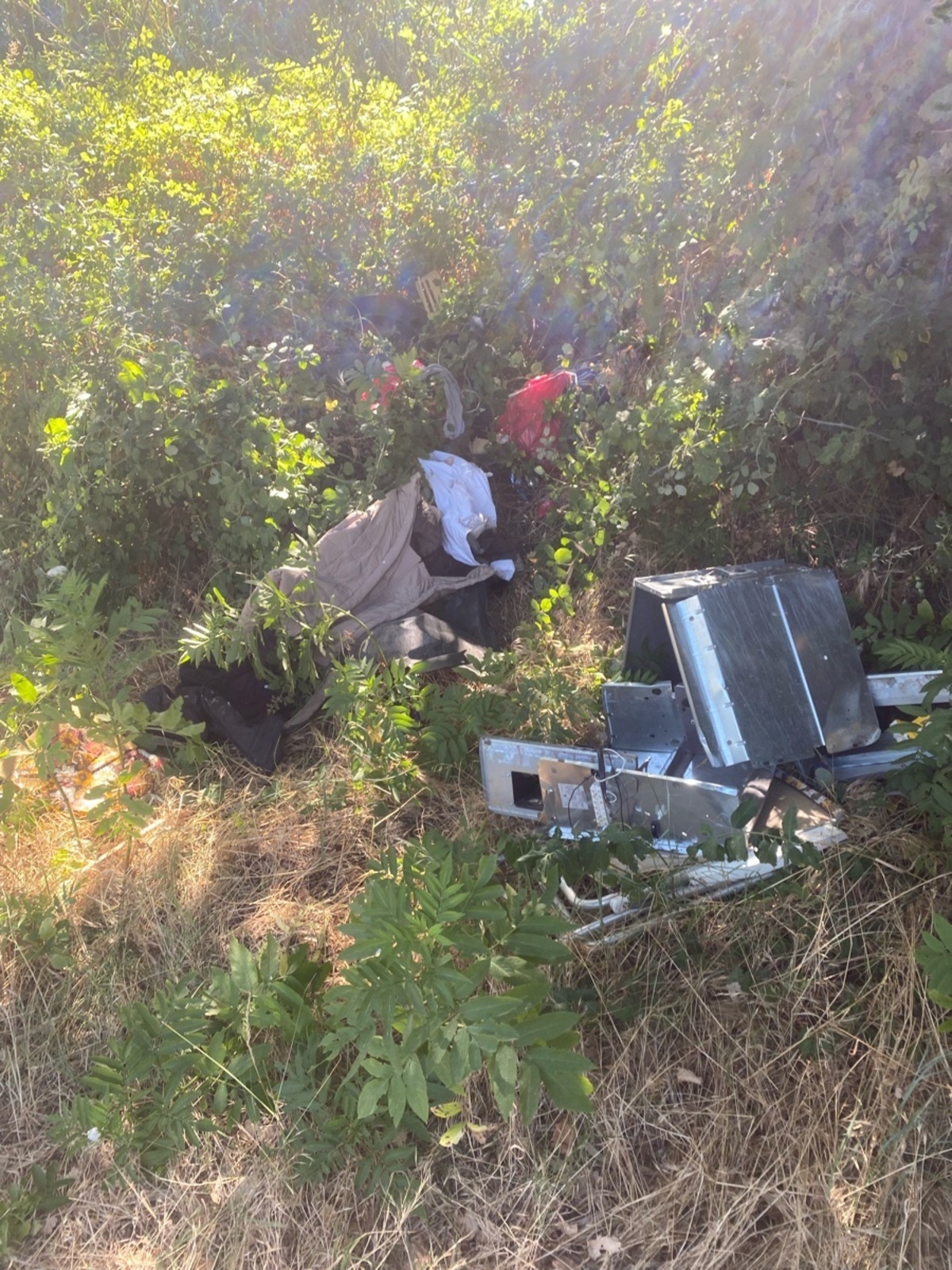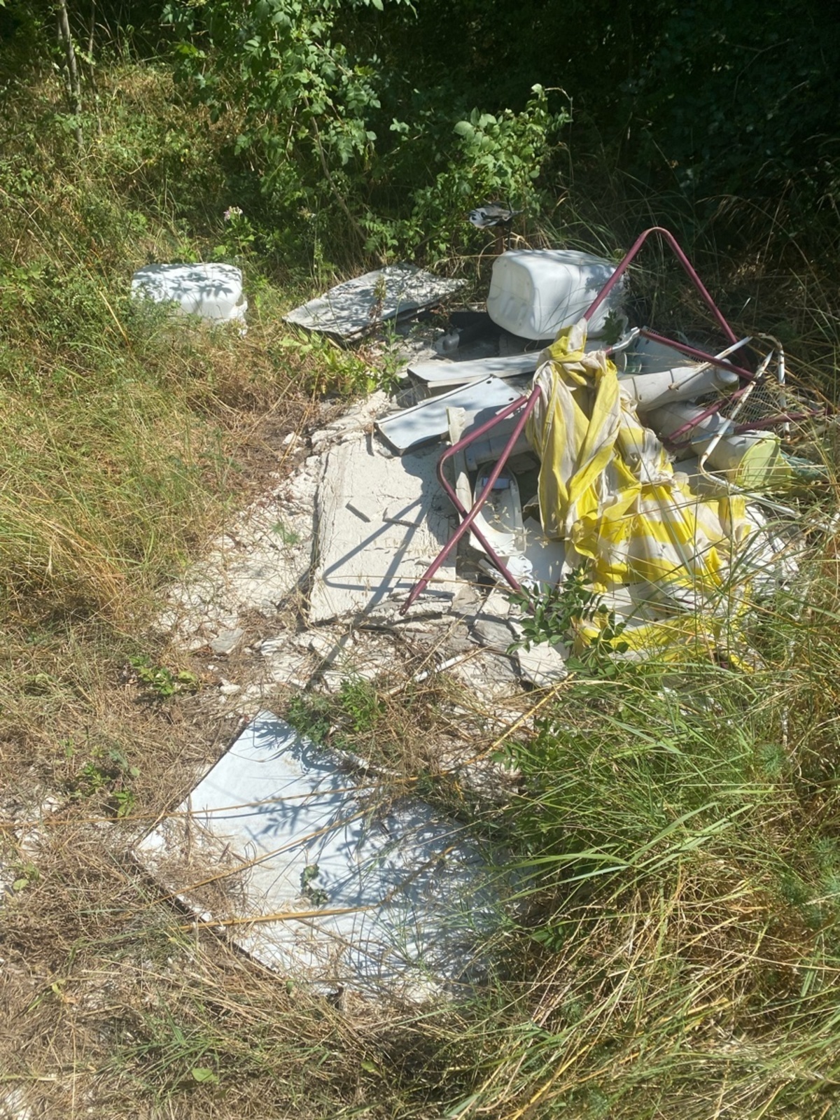 Dépôt sauvage de déchets en zone naturelle boisée