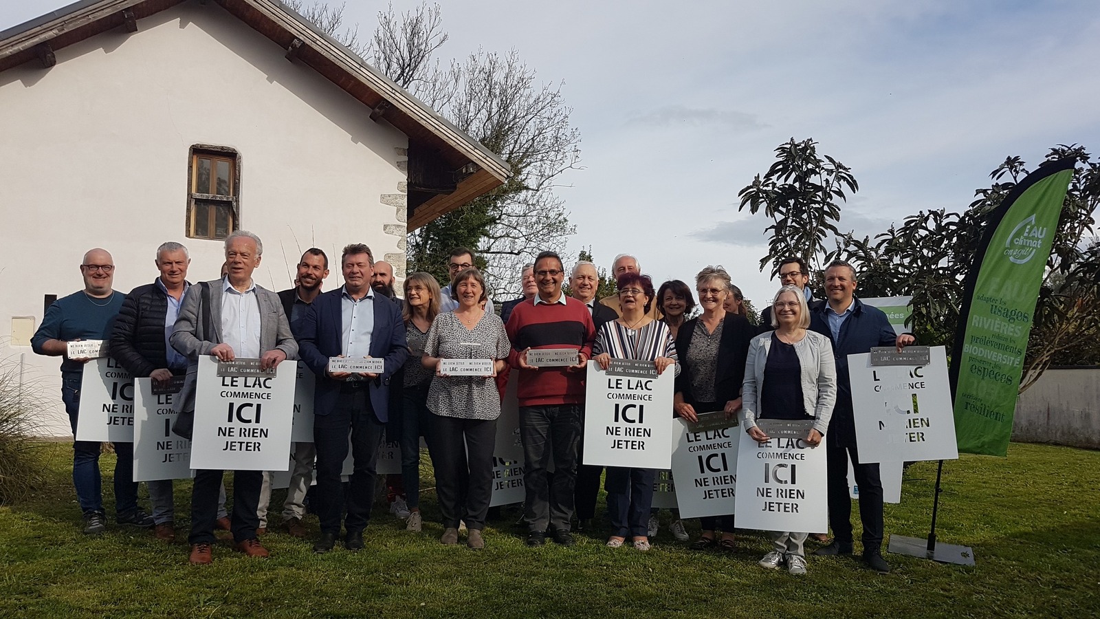 Distribution aux 36 communes engagées dans EAU climat, on agit ! de pochoirs et de plaques inox "le lac commence ICI ne rien jeter"
