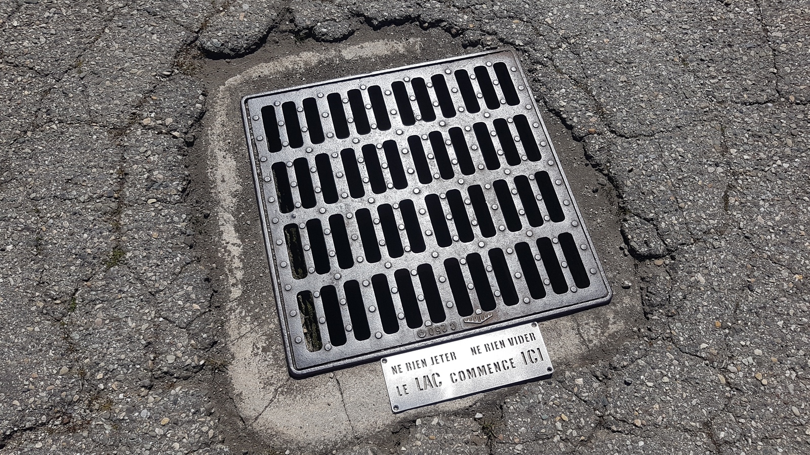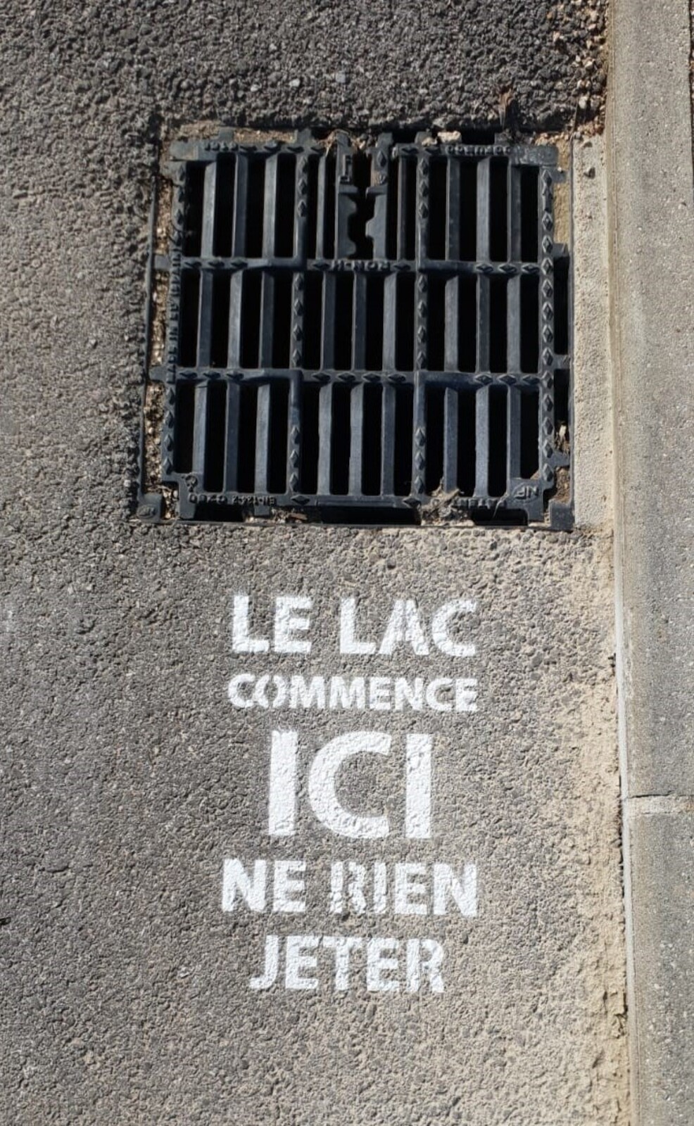 Marquage des grilles d'eaux pluviales "le lac commence ICI ne rien jeter"