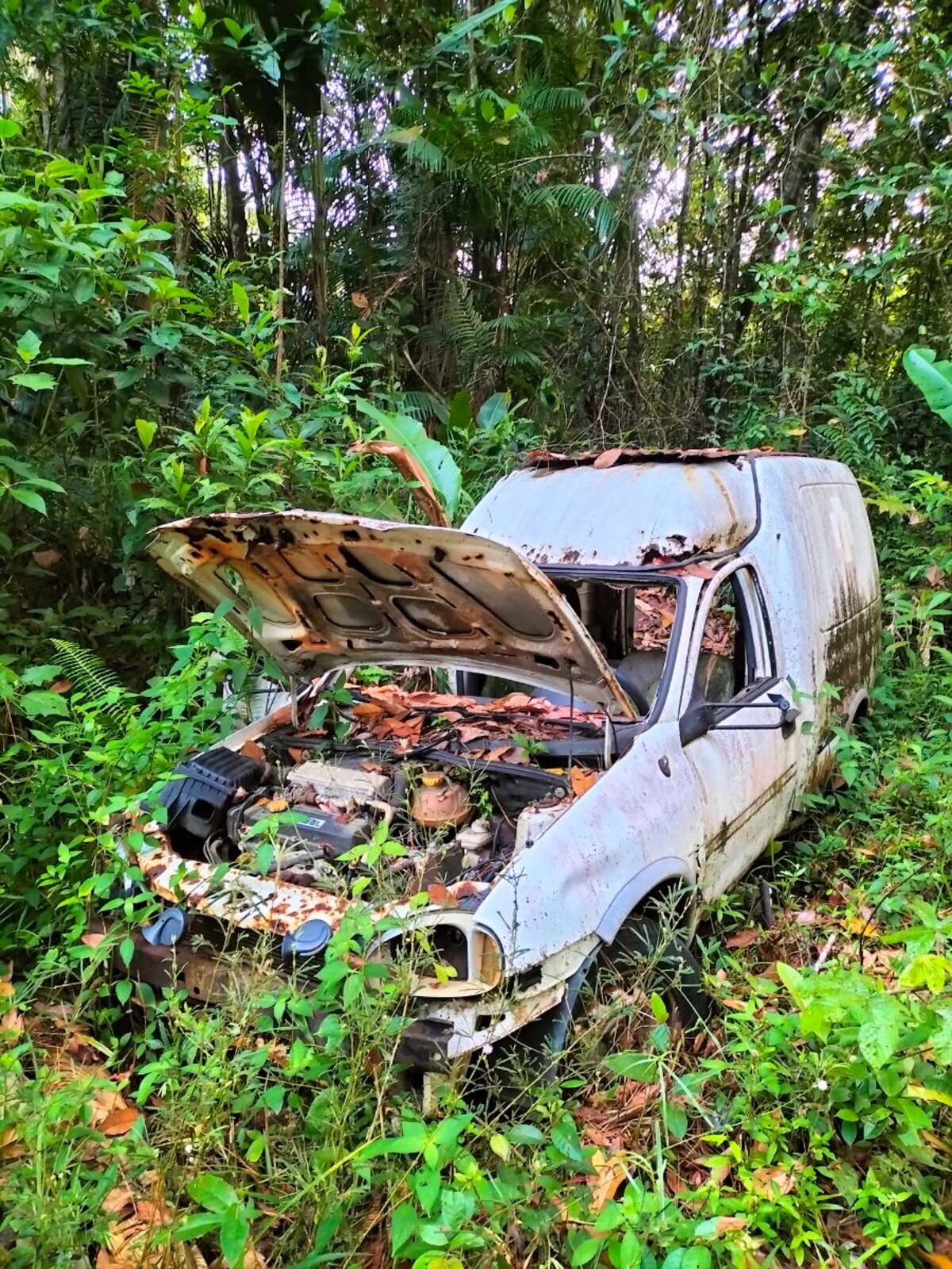 Une carcasse de petite fourgonnette a été signalée proche Quesnel sur un chemin.