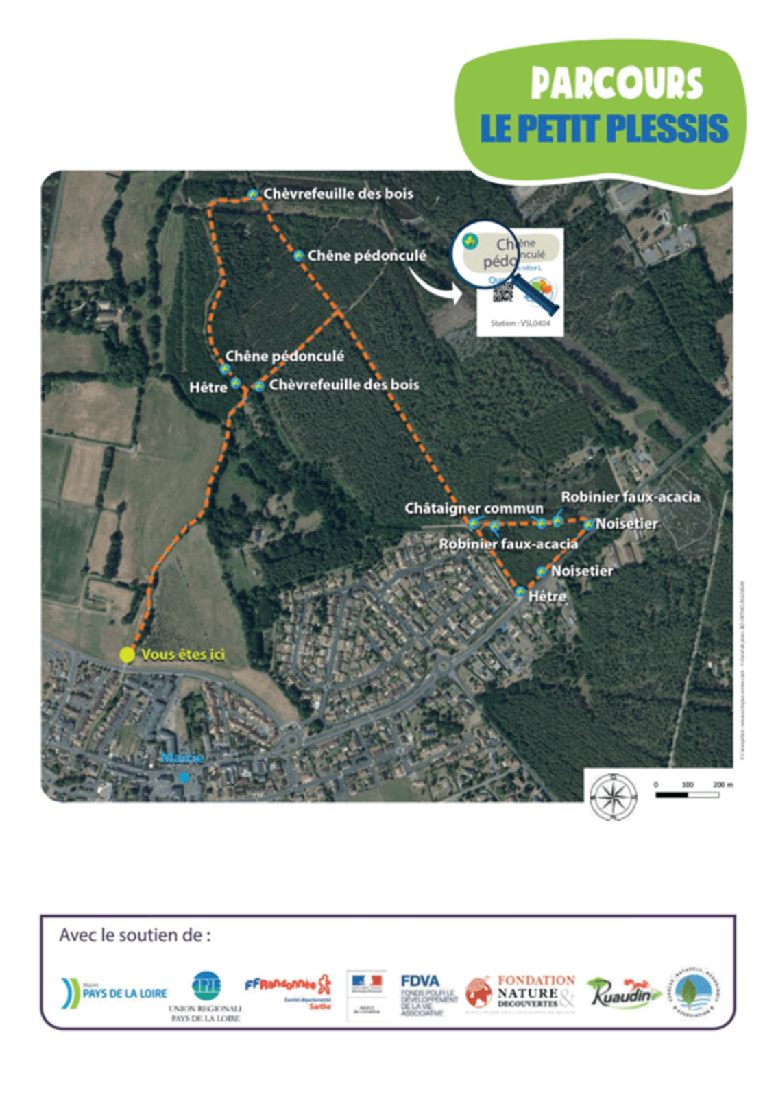4ème commune en Sarthe à accueillir un itinéraire Rando’clim, Ruaudin a inauguré son sentier le samedi 1er avril 2023. Ce sont 2,7 kilomètres de parcours, jalonnés de 6 essences différentes : le Chêne pédonculé, le Robinier faux-acacia, le Chèvrefeuille des bois, le Hêtre, le Châtaignier et le Noisetier.