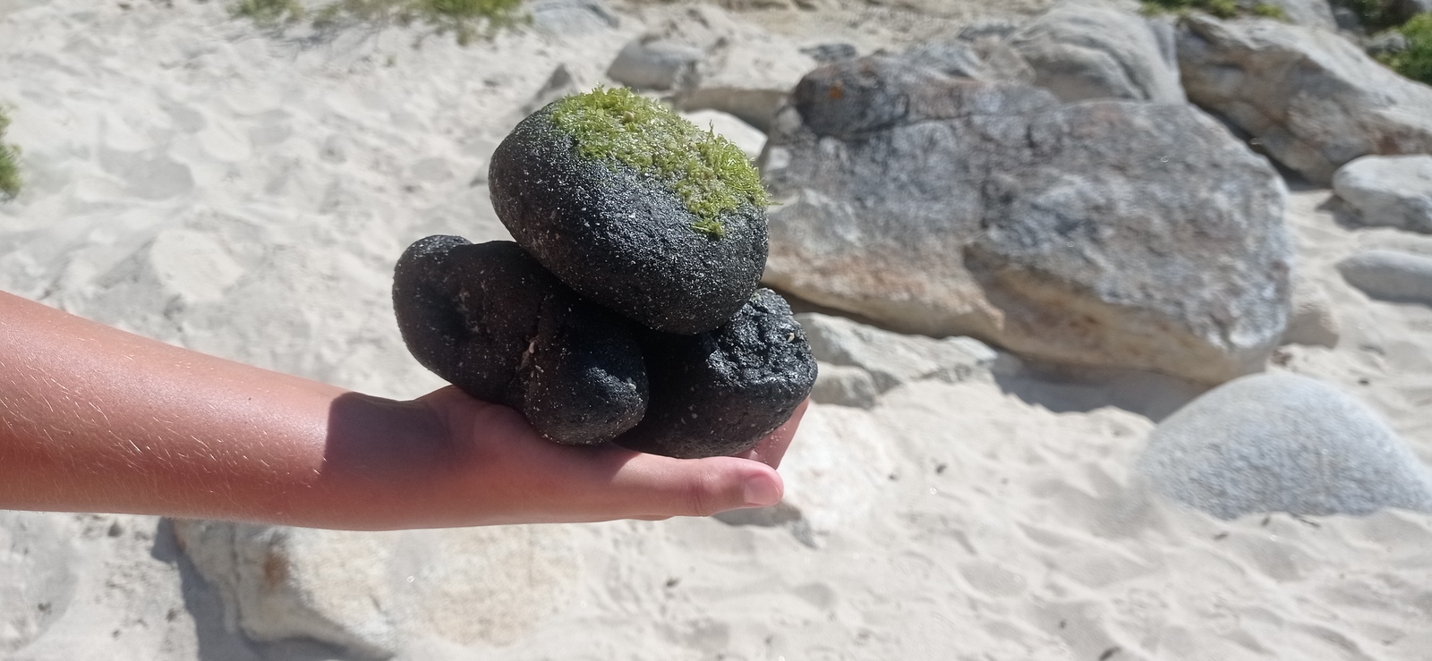 Observations de plusieurs grosses boulettes de Mazout dans les rochers, trouvées sur la plage de Corsen de Plouarzel à 1 mois d'intervalle.