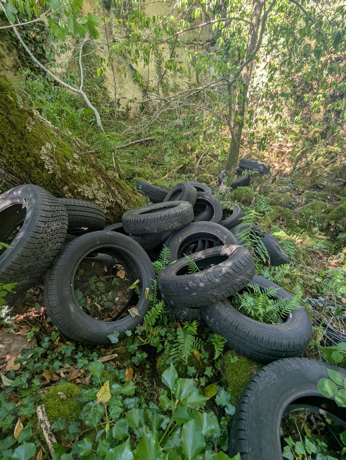 Dépôt de pneu en bordure de la rivière Sénouire.