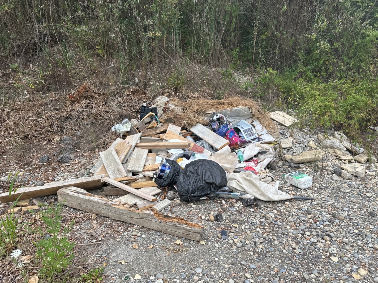 Divers détritus de bois, plastique, poubelle etc…